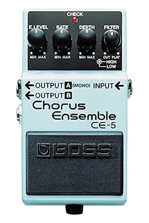 The CE-5 Chorus Ensemble is BOSS’ ultimate compact chorus pedal, covering a wide frequency range and featuring high- and low-cut filters. This lets users create any kind of chorus effect–from a mild, natural chorus to the clear and penetrating stereo chorus effect popular in contemporary music.