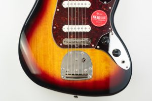 The Classic Vibe Bass VI is a faithful tribute to the secret weapon of producers and adventurous players that have dared to explore it since its original production from 1961 to 1975. Tuned an octave lower than a guitar and featuring a vintage-style tremolo, the Bass VI is the perfect companion to accompany any guitar or bass player into uncharted territory. Player-friendly features include a slim, comfortable “C”-shaped neck profile with an easy-playing 9.5″-radius fingerboard and narrow-tall frets, as well as a floating bridge with barrel saddles for solid string stability. This throwback Squier model also features 1960s-inspired headstock markings, rich-looking nickel-plated hardware and a slick vintage-tint gloss neck finish for an old-school vibe.