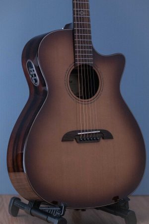 The AEG95ce is a beautifully developed Grand Auditorium with a rare and inspired pairing of tonewoods. Its AA North Western Red Cedar top and Macassar Ebony body give this guitar a warm and open voicing with darker trebles and clear bass. Aesthetically, the guitar is stunning with a lighter shade of our standard Shadowburst carefully crafted to let the grain of the wood stay visible right to the edge, where it is met with Ebony binding. This is a standout guitar with a character true to its sound.