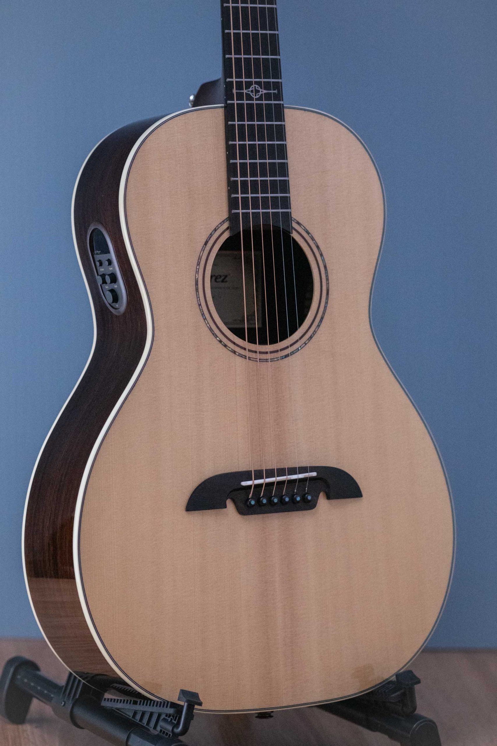 Parlor guitars are incredibly comfortable to play due to their size, and they also project very well. Their voicing harks back to the early roots, folk and blues recordings we cherish. Alvarez parlor guitars are all of that and more, due to a FS6 bracing structure which allows the soundboard to produce a response that brings more openness and better dynamics to the instrument’s projection. These parlors have an impressive volume and openness while still retaining the type of compression and focus a small body guitar is known for, which makes this AP70e a versatile instrument that will handle most style of playing.