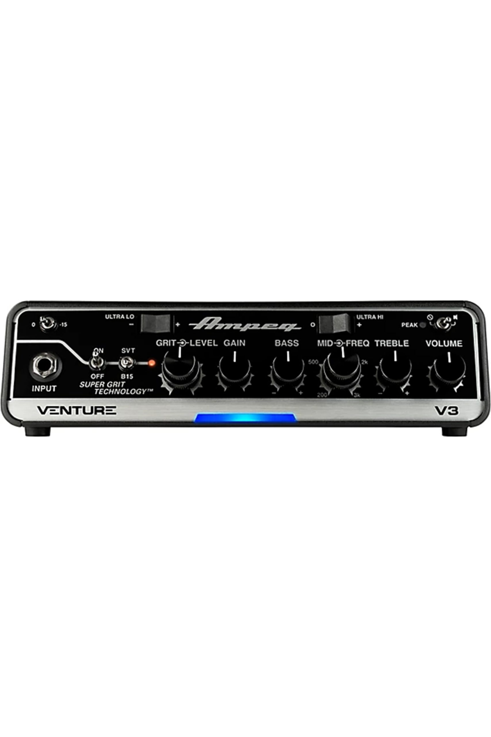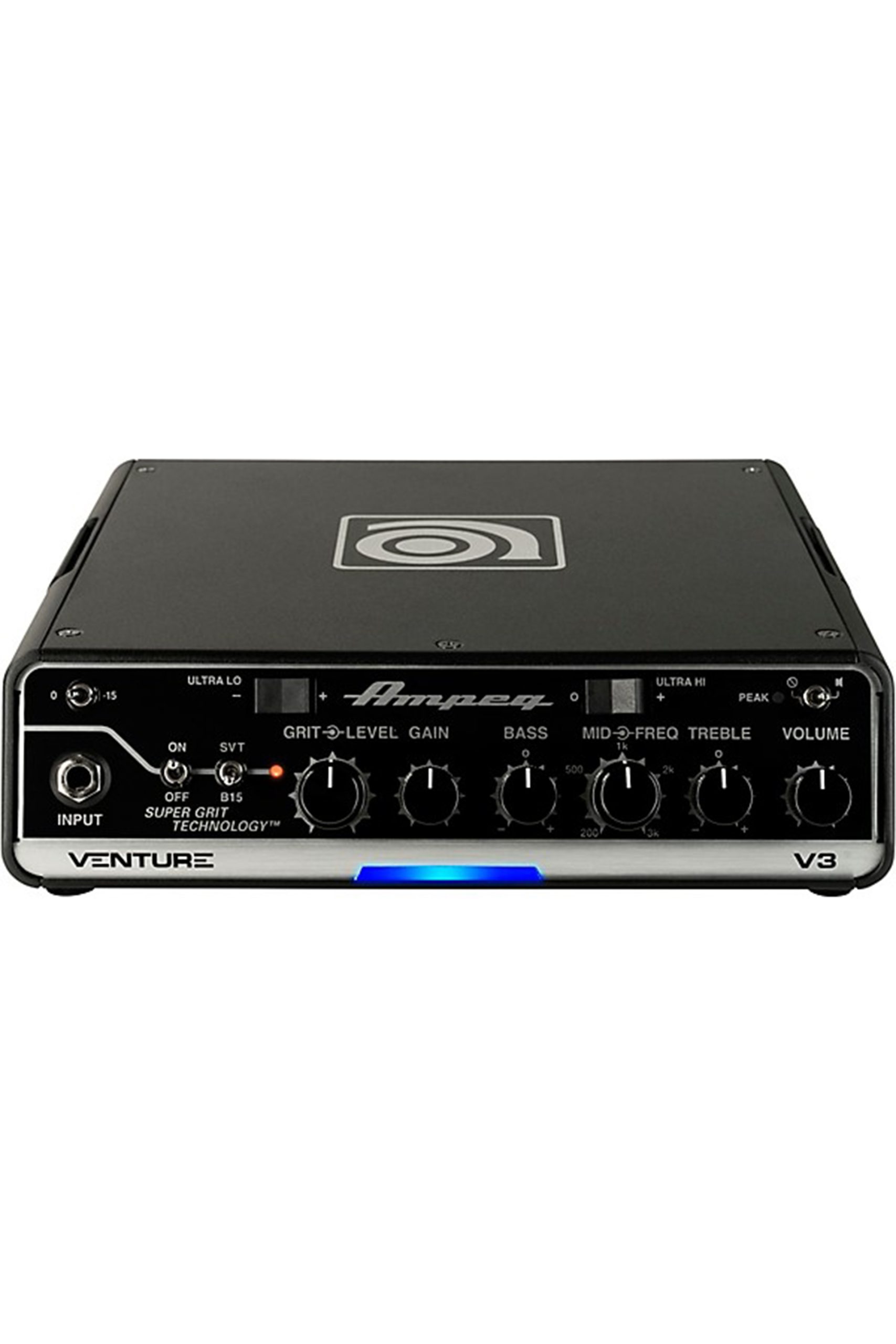 Designed to deliver the modern style and features sought by contemporary bassists, the ultraportable Ampeg Venture V3 is the smallest and lightest of the three heads in the Venture Series and easily fits into a gig bag, a laptop bag or the optional Venture carrying bag (sold separately), making it an ideal head for the traveling bassist.