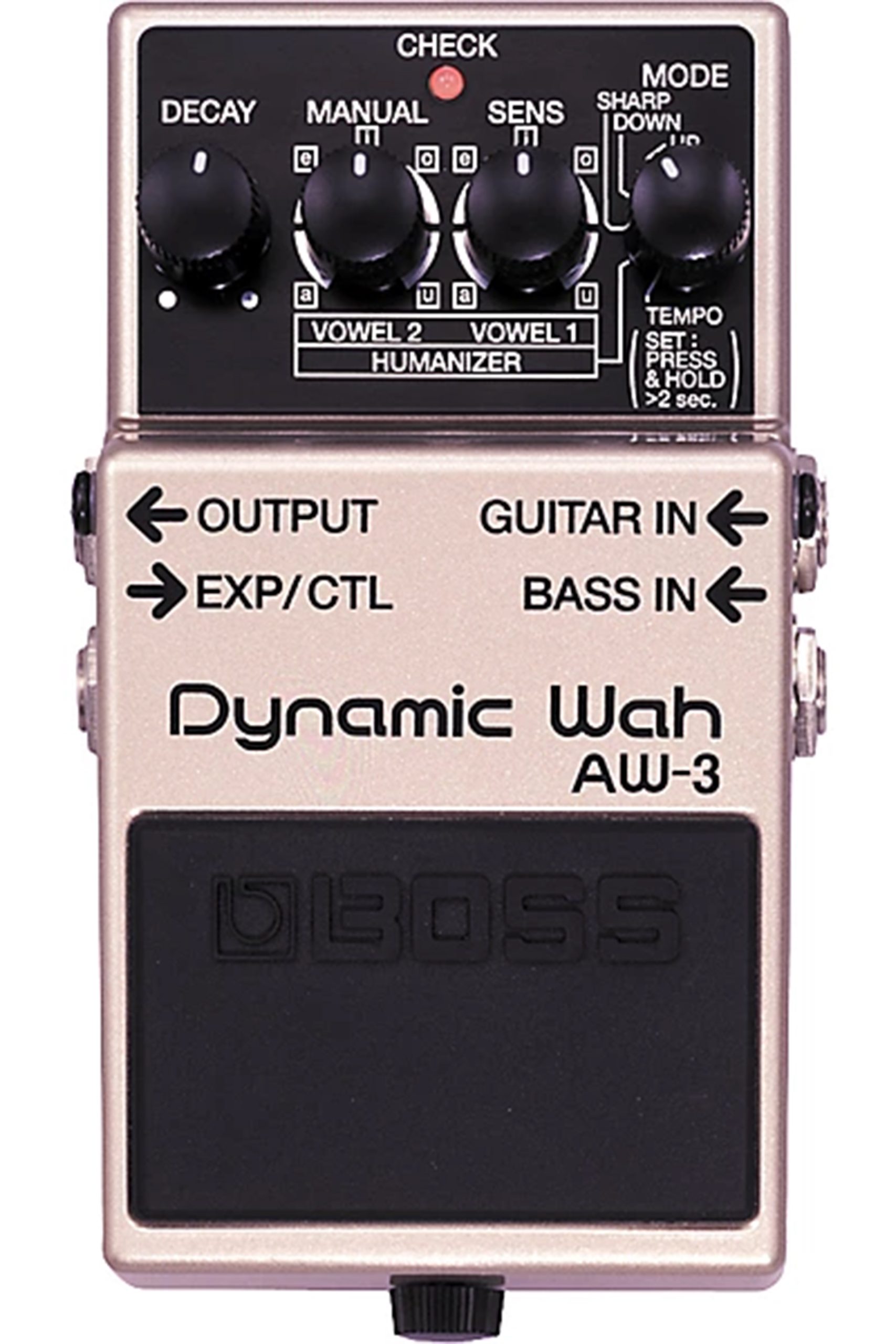 The BOSS AW-3 Dynamic Wah pedal gives guitarists a wide range of classic auto-wah and dynamic wah effects, plus a new “Humanizer” effect which can simulate human vowel sounds. A Bass input provides a variety of funky wah sounds for bass guitar.
