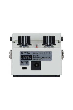 The BP-1W features high-quality buffer circuitry with two selectable types. Slide the rear panel switch to choose between the pure signal of a standard buffer or a vintage buffer with lower input impedance. The vintage type produces a warmer tone and a smooth dynamic response, with maximum benefits achieved by connecting a guitar with passive pickups directly to the BP-1W’s input. The standard buffer is always engaged for signal conditioning when the pedal is bypassed, regardless of the buffer switch setting.