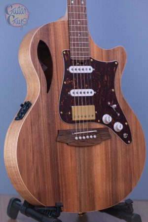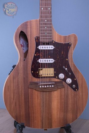 - All solid timber cutaway True Hybrid Thinline Grand Auditorium with F.E.A internal bracing.