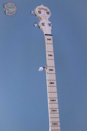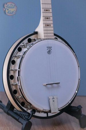 The Goodtime Two weighs 6 lbs – about the weight of a guitar. The Goodtime Two has a natural blonde maple with a satin finish to protect it. The rich, golden tone and the reverberation off the resonator sound great. You can definitely tell a volume difference between open back and a Goodtime Two.