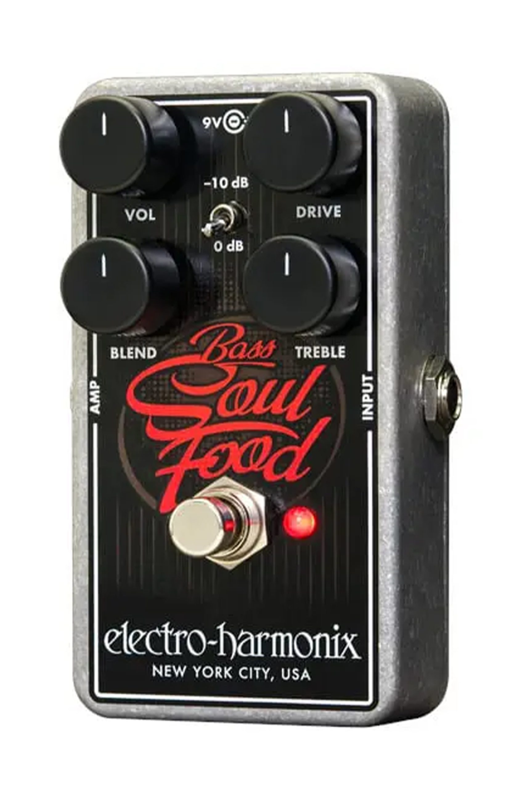 Selectable true or buffered bypass modes and a switchable -10dB pad for active instruments complete the package. Bass Soul Food runs on a 9V battery and ships with a EHX9.6DC-200 power supply.