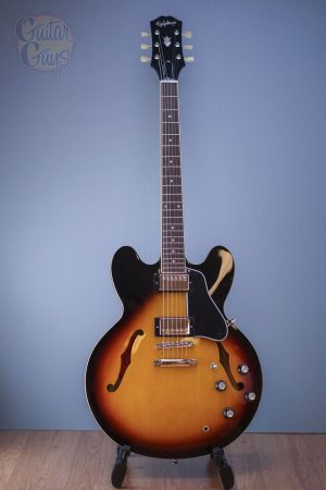 The ES-335 is Epiphone’s version of the historic ES-335 that has been wowing guitar players all over the world for over six decades. From its inaugural appearance in 1958, the Gibson™ ES-335 set an unmatched standard. The Epiphone ES-335 is no exception. It is simply one of the best deals today for guitar players who want the classic sound of an ES-335 at an accessible price. The ES-335 is crafted with a layered maple top, back, and sides coupled with a solid maple tone block to create the amazing sustain, warmth, and resonant tone that players crave in a semi-hollow instrument. Epiphone’s Alnico Classic PRO™ Humbuckers deliver a wide range of vintage sounds while the rounded C neck profile is extremely comfortable and easy to play, and the headstock features the 60s style Kalamazoo shape.