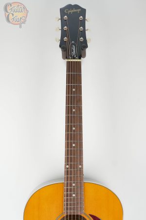 Every detail of the J-45 Studio pays homage to Gibson’s timeless acoustic craftsmanship. From its dark tortoiseshell teardrop pickguard to the three-on-a-plate tuners with ivory-colored buttons, each feature evokes a familiar sense of vintage authenticity. The belly-up rosewood bridge with ivory pins ensures stable tuning and excellent string resonance, while the gloss finish highlights the guitar’s natural wood grain. A 1960s Kalamazoo-style headstock, adorned with the Epiphone logo in gold silkscreen, completes the classic aesthetic. It’s a refined yet approachable instrument that looks as inspiring as it sounds.
