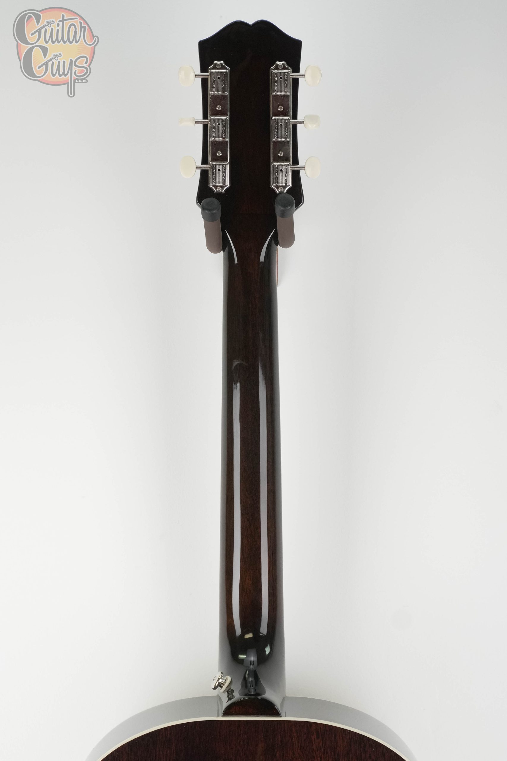 - Tuning machines: Three-on-a-plate with ivory plastic buttons