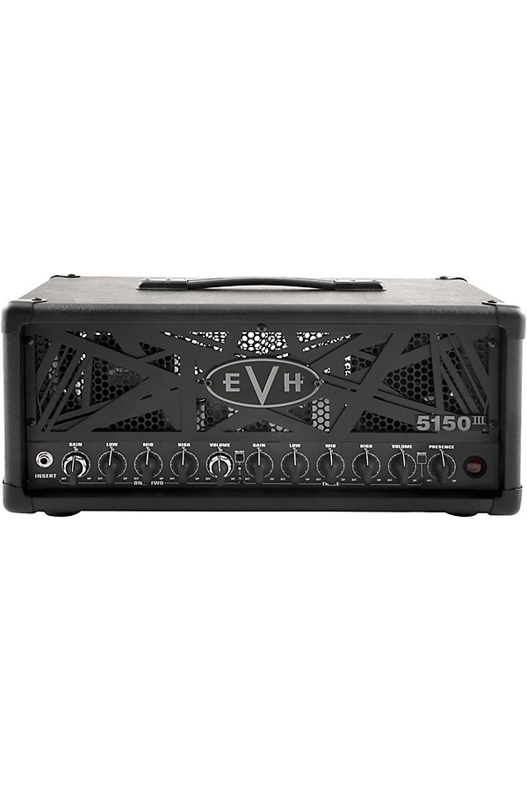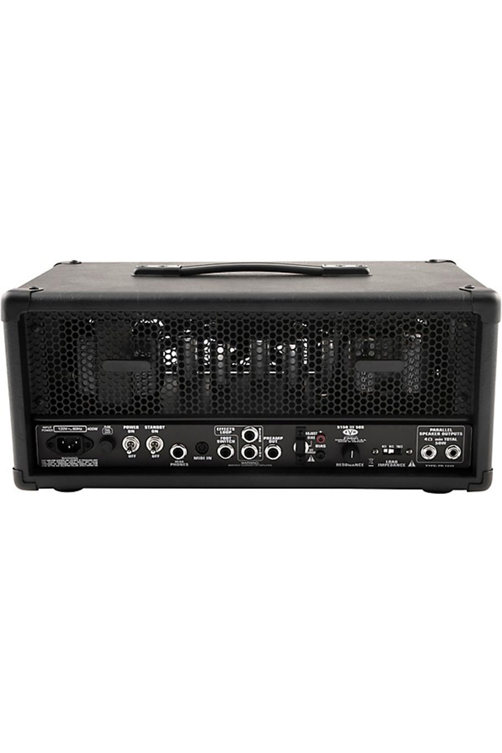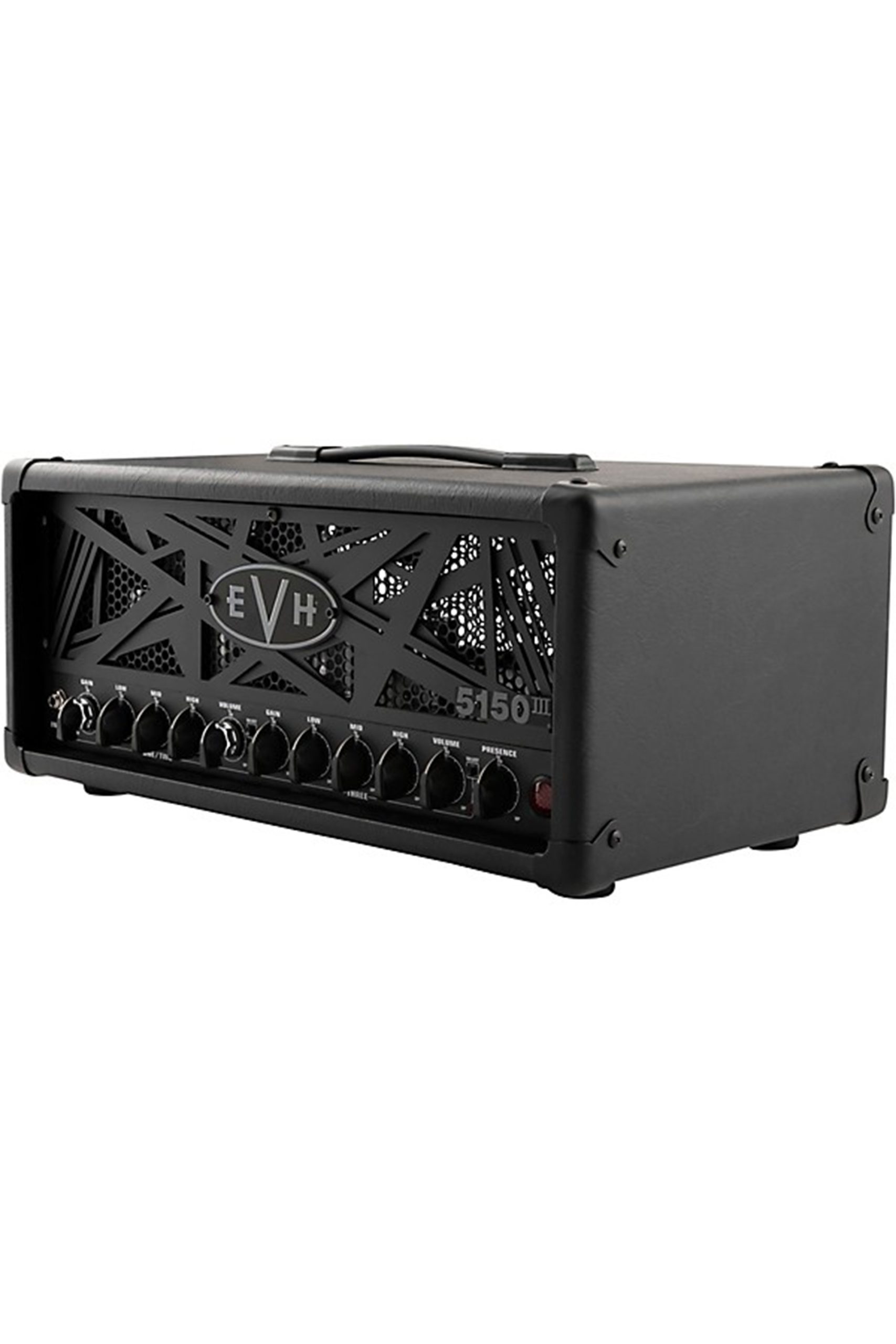 Sporting a stealth black vinyl covering and black control knobs, the 5150III 50W tube head has a sinister and road-ready look that matches its tone. Premium components like rugged steel chassis construction and heavy-duty transformers provide rock-solid reliability for life on the road.