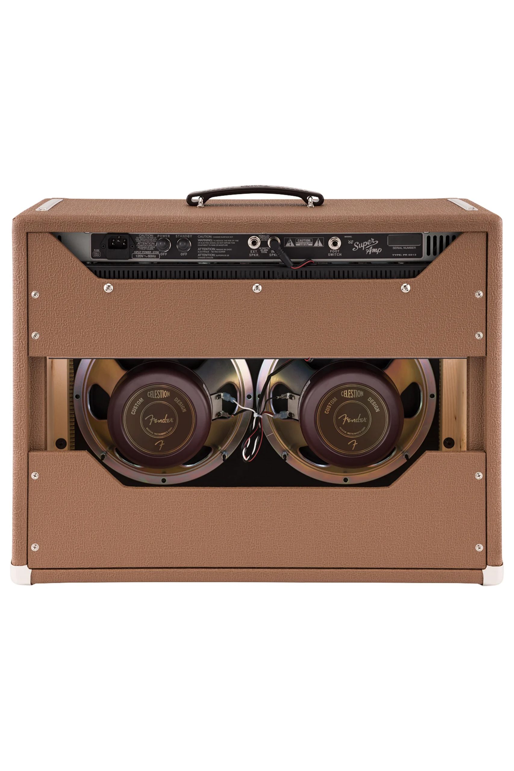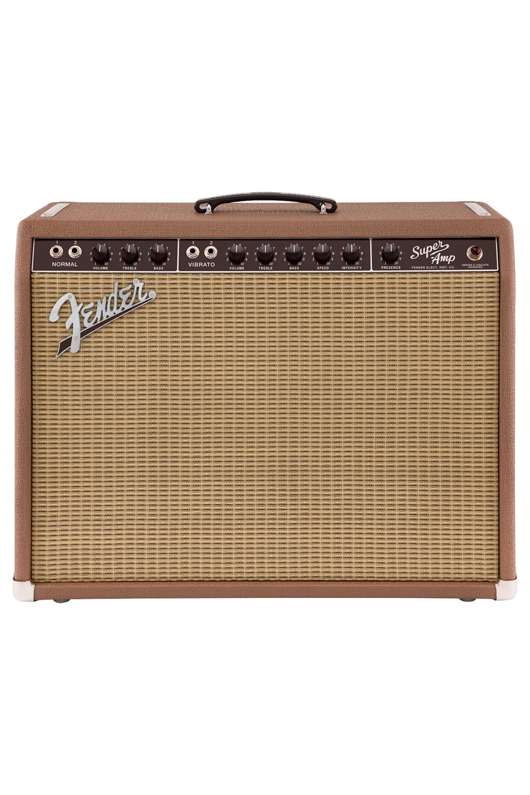 The first of the Fender brown panel models, the ’62 Super has an incredibly warm and woody sound when played clean blooming into sweet overdrive when cranked. Along with its special phase-shifting harmonic tremolo, this amp dishes out phenomenal tone at any volume. With dual 6L6 power tubes pushing 40 watts through two 10″ Celestion Custom Design speakers, the ’62 Super is ideal for recording and gigging.