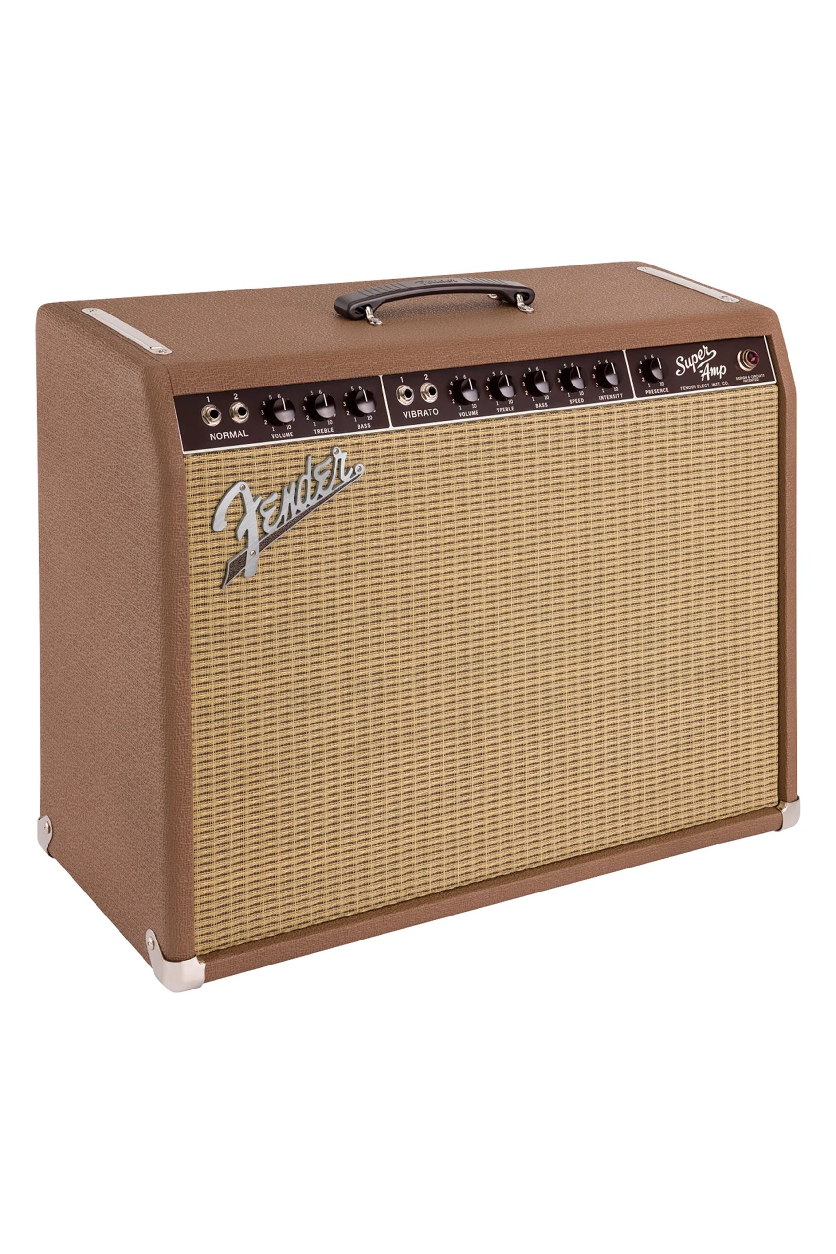 - Fender ’60s brown Nubtex cabinet covering and aged wheat grille cloth