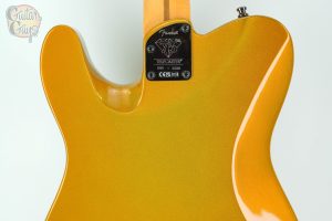 Commemorating the Telecaster’s 75th Anniversary, the Fender® American Ultra II Telecaster® represents the culmination of three-quarters of a century of innovation, expertise and relentless pursuit of perfection. This milestone instrument features a select alder body with sculpted body contours, finished in our stunning Liquid Gold—a lustrous, deep metallic finish that captures and reflects light with mesmerizing depth and richness. This premium finish combines golden warmth with sophisticated elegance, creating a guitar that’s as visually striking on stage as it is sonically powerful. For effortless playability, the quartersawn maple neck features our Modern “D” profile and smooth Ultra Satin finish. Ebony 10”-14” compound radius fingerboards feature Ultra rolled edges, medium-jumbo frets, custom lap steel inlays, Luminlay® side dots and Graph Tech® TUSQ® nut. The tapered neck heel and sculpted body contours allow unparalleled access to the higher register.Under the hood, a 75th Anniversary Noiseless Single-Coil in the neck position pairs with a 75th Anniversary Fastlane™ bridge humbucker to deliver sweet crystalline cleans, snappy Tele® twang and beefy growl, all without a hint of hum. Dual patented S-1™ switches unlock unprecedented tonal versatility—one puts the pickups in series for even more sonic options, while the second cleverly engages series/parellel mode for the humbucker. Additional road-ready features include 6-saddle string-through-body bridge with brass saddles, Deluxe locking tuners, knurled aluminum knobs and 1-ply anodized aluminum pickguard.The American Ultra II Telecaster infuses iconic style with advanced appointments to take your playing to stratospheric new heights. For players who demand flawless tone, infinite versatility.