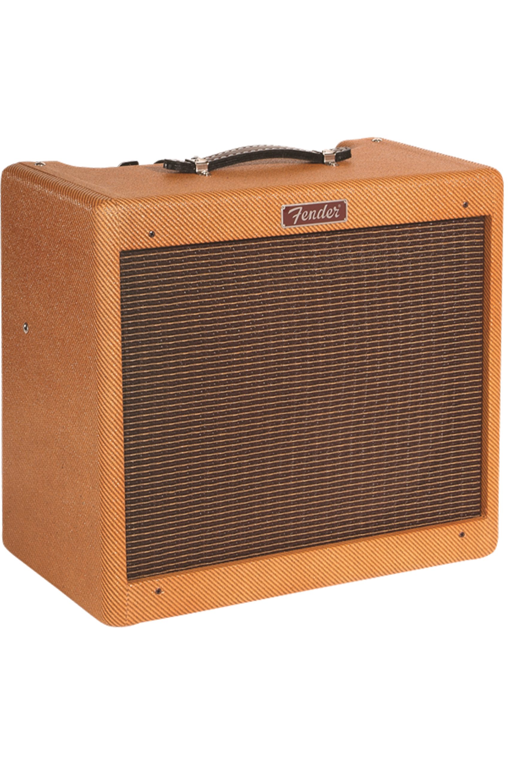 The Blues Jr. Lacquered Tweed takes Fender’s 15W gem and gives it the true vintage treatment with a lacquered tweed covering and a vintage-voiced 12″ Jensen speaker. Its golden tones are generated by an all-tube signal path using a pair of EL84 output tubes and 3 – 12AX7 preamp tubes. Add renowned Fender reverb, flexible controls, FAT switch for mid boost, and you’re in business. And just look at that chrome panel, that tweed finish with vintage-style brown and gold grille cloth, and those vintage pointer knobs!