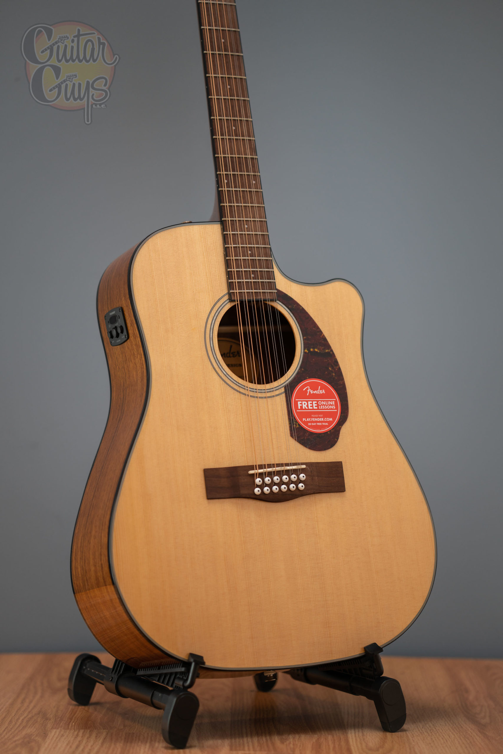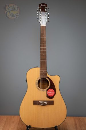 Fender CD-140SCE 12-STRING Combining upgraded Fishman® CD electronics with Ovangkol back and sides and a hardshell case, the CD-140SCE 12-String is ideal for any player looking to expand their sonic palette with an affordable, high-quality 12-string acoustic. The single-cutaway dreadnought body and solid spruce top provide robust tone, and the easy-to-play neck is comfortable for all playing styles.