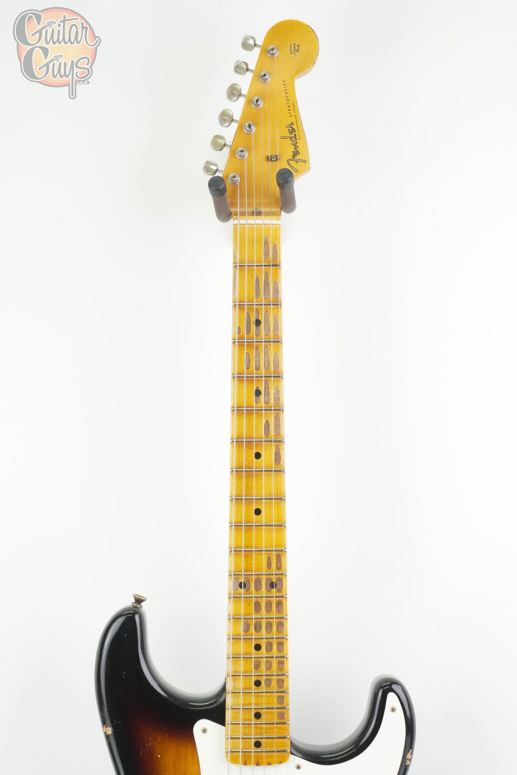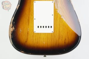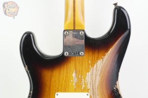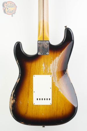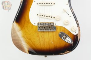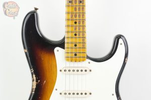 A Fender Custom Shop 1957 Stratocaster Heavy Relic is a handcrafted electric guitar built to mimic a worn, vintage instrument with a “heavy relic” finish that shows decades of simulated wear.