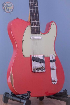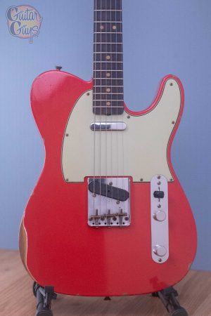 The two-piece select alder body is artfully aged in Relic® lacquer Aged Olympic White, Fiesta Red and Lake Placid Blue finishes and is paired with a rift sawn maple neck with ‘60s-style Oval “C” back-shape and a round-laminated rosewood fingerboard. With the throaty midrange and bite of a Custom Shop hand-wound Original Blackguard bridge pickup and the crystalline clarity of a Custom Shop hand-wound Twisted Tele neck pickup, this guitar delivers classic Telecaster® tone with astonishing versatility.