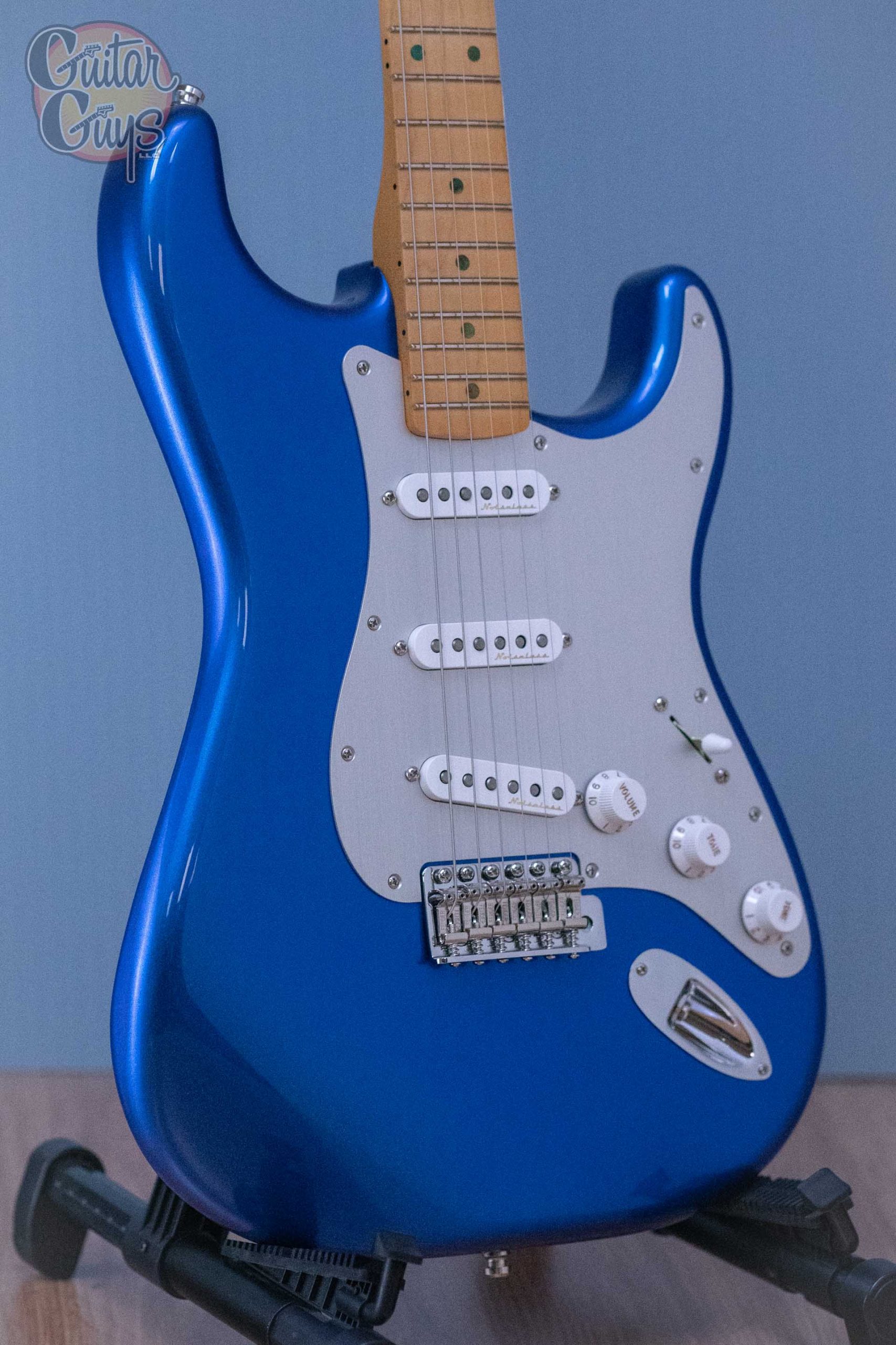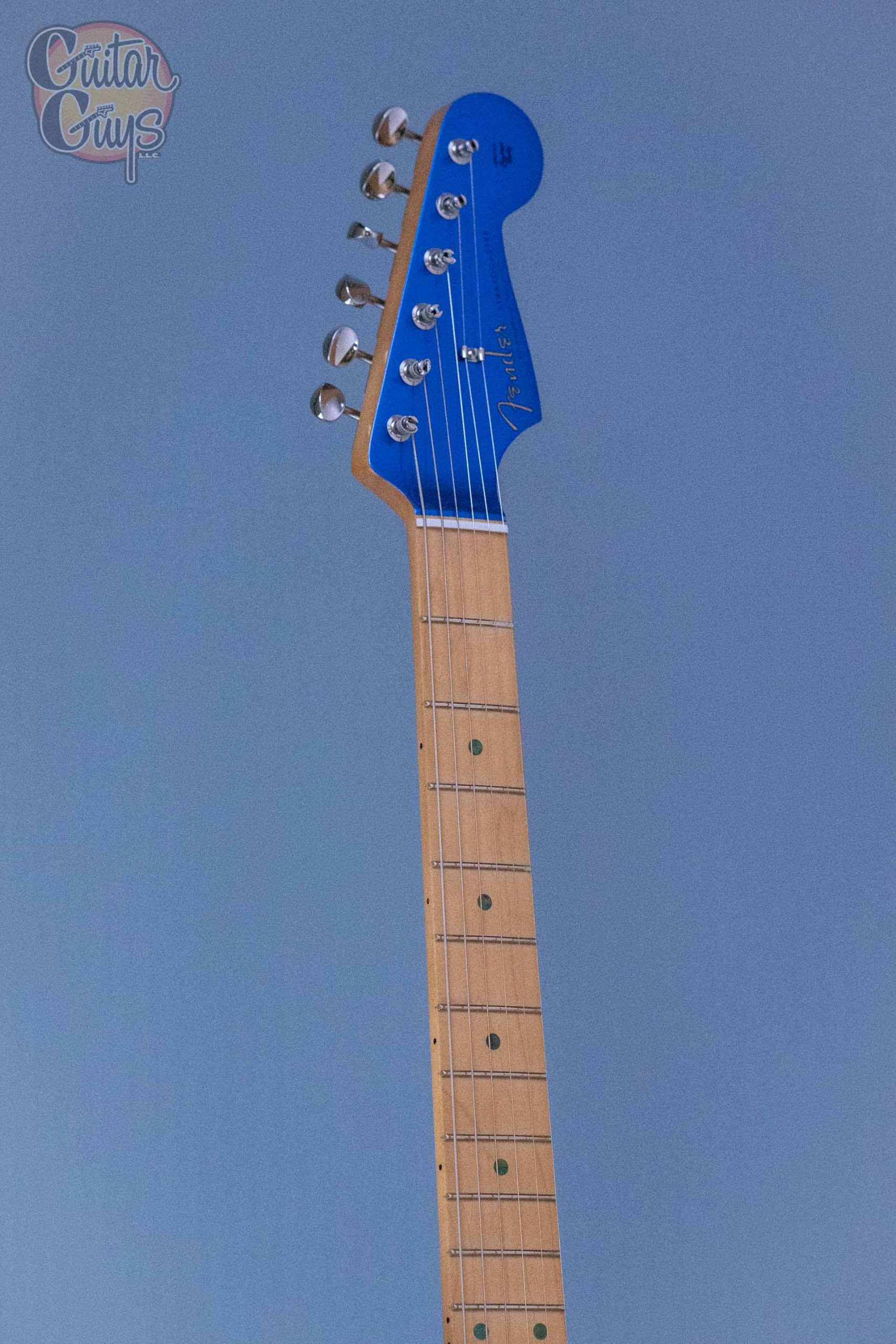 The H.E.R. Stratocaster® makes a statement as bold as the artist who inspired it. Finished in dazzling Blue Marlin and featuring a mid-‘60s “C” shape maple neck, Vintage Noiseless™ pickups and an anodized aluminum pickguard, this guitar delivers effortless playability, classic Strat® tone and extraordinary good looks.