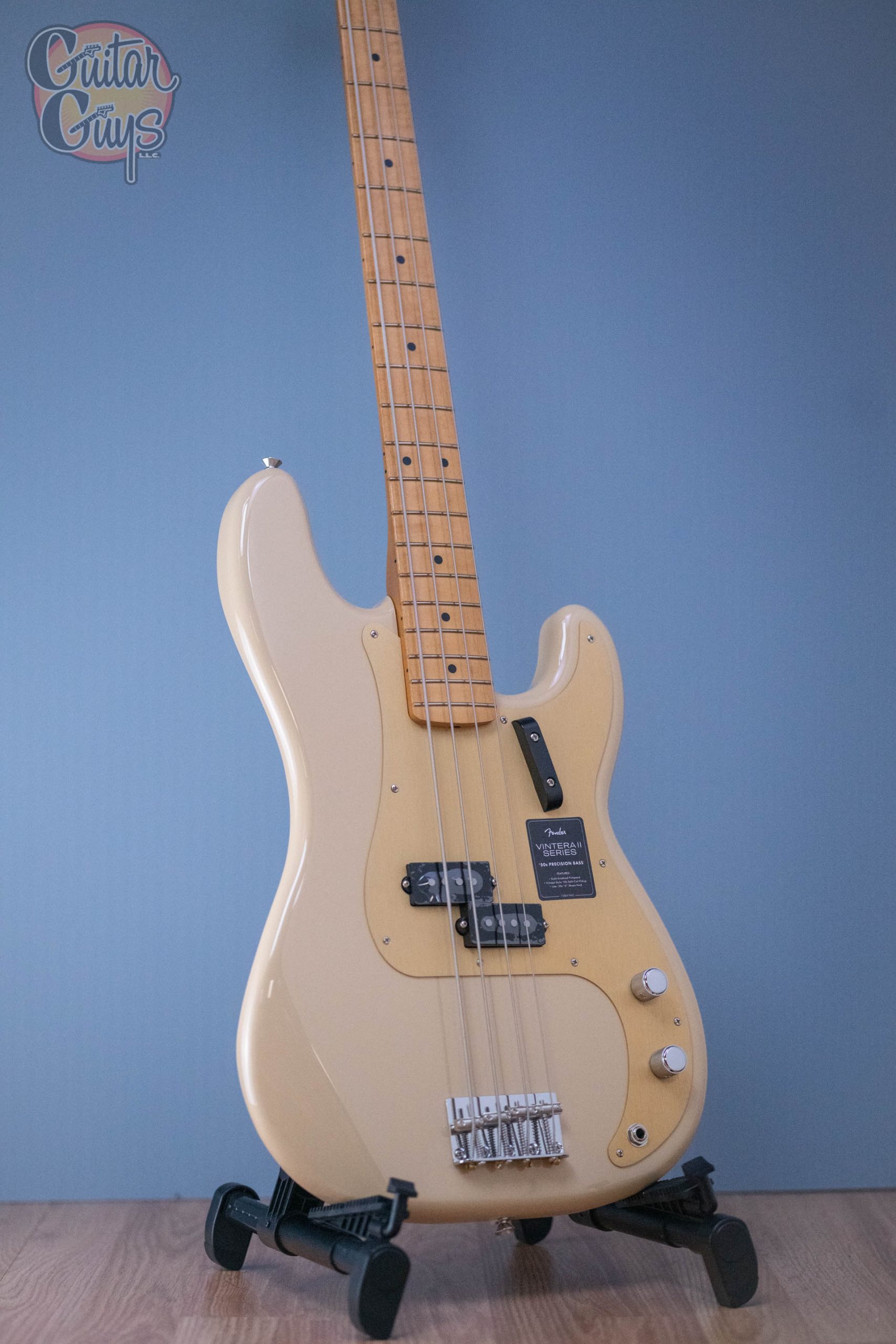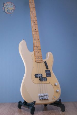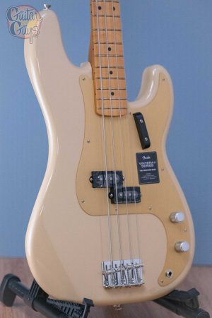 The Vintera II ’50s Precision Bass represents a classic version of the world’s first electric bass design, after it had undergone a major redesign to feature a new split-coil pickup, a larger Strat-style headstock, and a beatiful gold anodized aluminum pickguard.