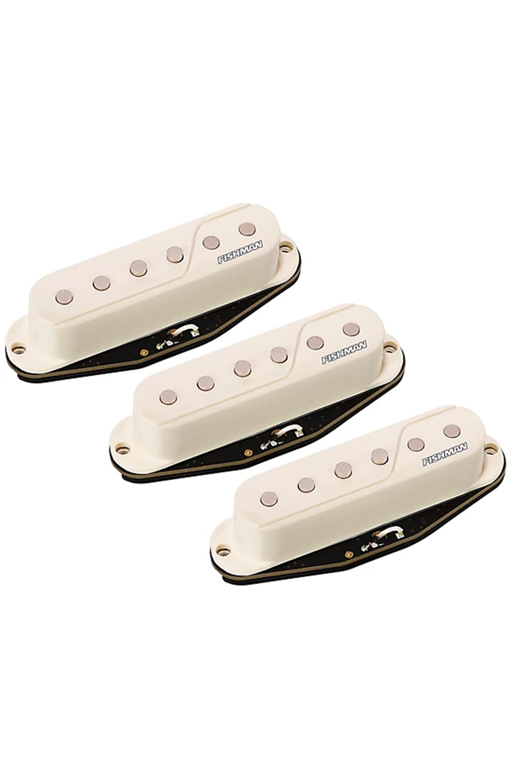 Get the most coveted, historical Strat tones without the hum, from vintage sweetness and clarity to muscular overwound punch, in the same guitar. Fishman Fluence pickups for electric guitars are the first real advancement in pickup system design in over 80 years. A new, analog, system-wide approach delivers great idealized guitar sounds that are also quiet and free from hum and other artifacts that affect our favorite pickups from the past.Multi-Voice Change Pickups on the FlyThe nature of the Fluence Core also allows Fishman to create multiple voices for each pickup, so every Fluence pickup has two selectable, complementary voices onboard. These voices can be accessed via any number of standard switches or push-pull controls.Power To The PeopleAnother example of the fresh thinking applied to Fluence is the way their power supply is stored and managed. Can you use a standard 9V battery? Yes. But where do you put it if your guitar doesnt have a compartment? The optional Fluence battery packs require no modification and screw on to your guitar in place of the control or spring cover. They offer 200+ hours of playing time and fully charge in a few hours using a standard USB charger.Idealized PickupsWith Fluence pickups you can run hundreds of feet of guitar cable without any loss in sound quality. Your volume control operates smoother than youve ever experienced and it has no adverse affect on your tone allowing you to get musically useful sounds in the 2 to 5 region of its travel. No hum, no buzz, no spurious noise or frustrating inductance issues.All Fishman Fluence Electric Guitar Pickups…· Are multi-voice – set and forget, or wire-up to toggle between two musically complimentary voices· Drop right in – replaces standard humbucking and single-coil pickups· Single width pickups are available in black or white· Are rechargeable on your guitar – optional lithium-ion battery pack offers weeks, not hours, of playing time**Standard 9V battery can also be used.