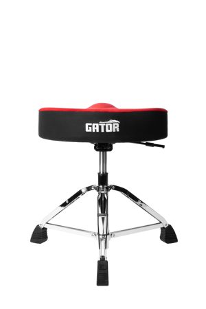 The Gator Percussion Series GP-DTH-ASD-RD Air Glide Saddle Seat Drum Throne in Black is built for drummers seeking premium comfort, durability, and effortless adjustability. The pneumatic Air Glide system offers smooth height adjustment from 18” – 24”, allowing players to find their perfect position with ease. Its large, contoured 3.5″ thick saddle-style seat (17.25” wide x 16” deep) features ergonomic thigh relief cutouts for superior comfort during long rehearsals or gigs. The velour top enhances breathability, minimizing sweat buildup while providing a stable, non-slip surface.