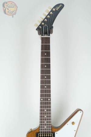 Now, Gibson Custom is proud to introduce the 1958 Mahogany Explorer Reissue. It features all of the hallmarks of the original Explorers from 1958, with the only difference being that mahogany has been used instead of the original, rare Korina wood, but otherwise, all of the classic vintage Explorer features have been carefully recreated in this Historic Reissue model. Mahogany delivers a somewhat warmer sound than the slightly brighter Korina, making it a great choice for players who love the 1950s Explorer aesthetic but who are looking for a denser, all-mahogany tone for rock and metal. And since mahogany is more readily available than the scarcer Korina, this also makes this 1958 Mahogany Explorer Reissue the most accessible way to get Historic Explorer looks, features, and performance from Gibson Custom.