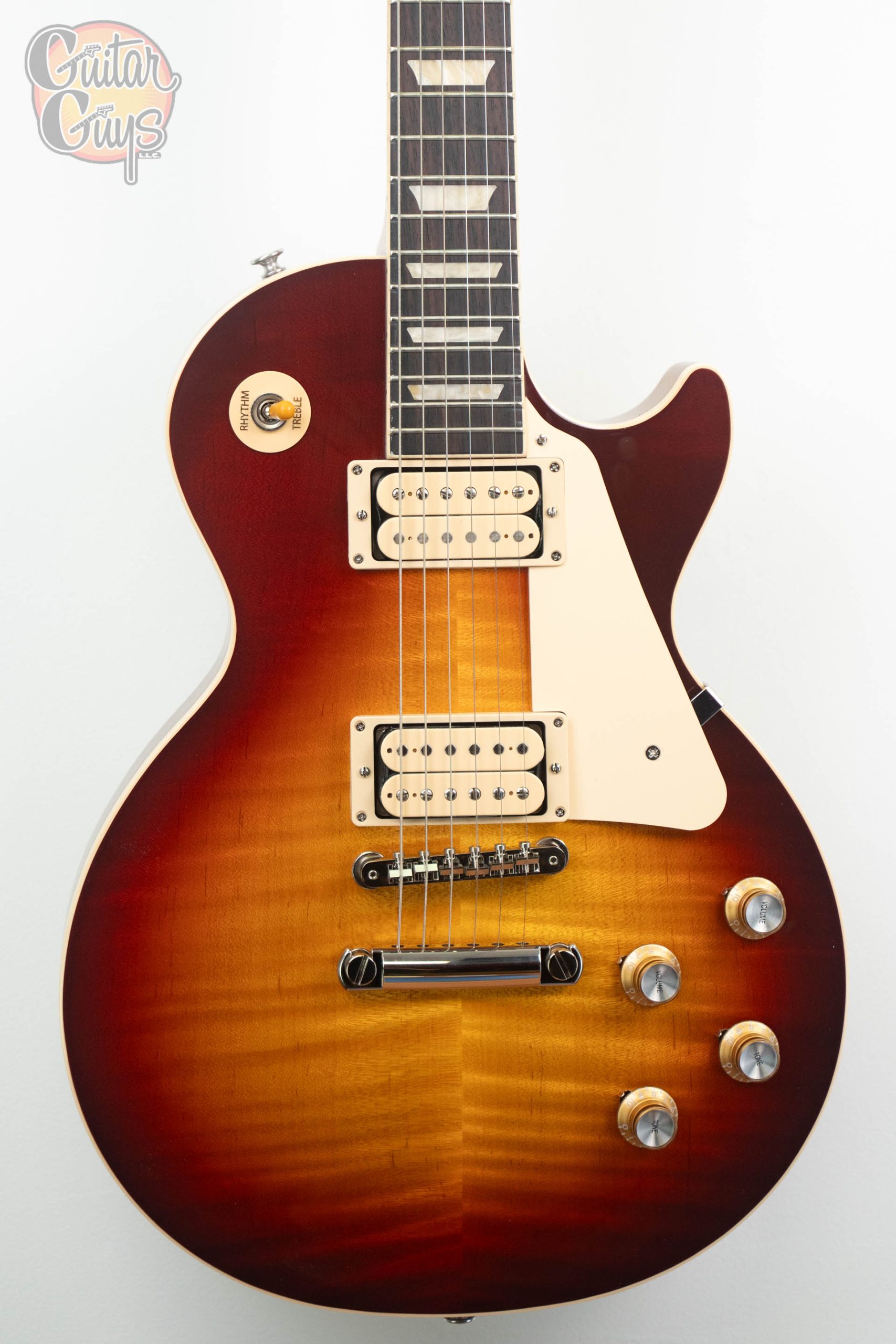 The Les Paul Standard 60s Double Trouble delivers all of the features and performance of our regular Les Paul Standard 60s models but with even more vintage appeal. These limited-run Les Paul models differ from our standard Les Paul Standard 60s models in two respects. First, the Burstbucker 61R and Burstbucker 61T humbucker pickups are left uncovered, and each has Double Classic White bobbins and is fitted with the standard Alnico 5 magnets. The second difference is in the finish. The finish colors are “Vintage” variations on our standard nitrocellulose lacquer finishes. Our standard gloss nitrocellulose lacquer finishes represent the finishes on brand-new models from the 1950s, while the full-gloss nitrocellulose lacquer Vintage finishes on the Les Paul Standard 60s Double Trouble models are slightly faded when compared to the standard versions, like the subtly faded light vintage aging that occurs over several years. The burst patterns vary somewhat from guitar to guitar since each is individually hand-sprayed.