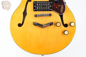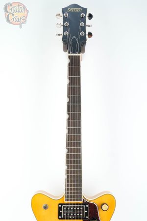 One of the standout features of this model is the master volume knob with push/pull coil splitting, allowing you to switch from full humbucking mode to single-coil tones with ease. This functionality expands the tonal range of the guitar, offering everything from thick, creamy humbucker tones to bright, glassy single-coil textures. The intuitive control layout, which includes Gretsch’s signature radio-style knobs, ensures quick and seamless adjustments. This feature makes the instrument highly adaptable for players who want access to diverse tonal options during performances or recording sessions.