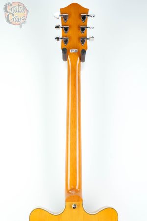 The laminated maple body of this guitar is paired with a chambered center block, designed to minimize feedback while preserving the instrument’s natural resonance. This construction is ideal for players who perform at high volumes, as it provides the sustain and warmth of a semi-hollow body without the risk of unwanted noise. The arched maple top further enhances tonal projection, delivering vibrant overtones and a balanced frequency response. Whether on stage or in the studio, this design ensures clean, focused sound even in demanding environments.