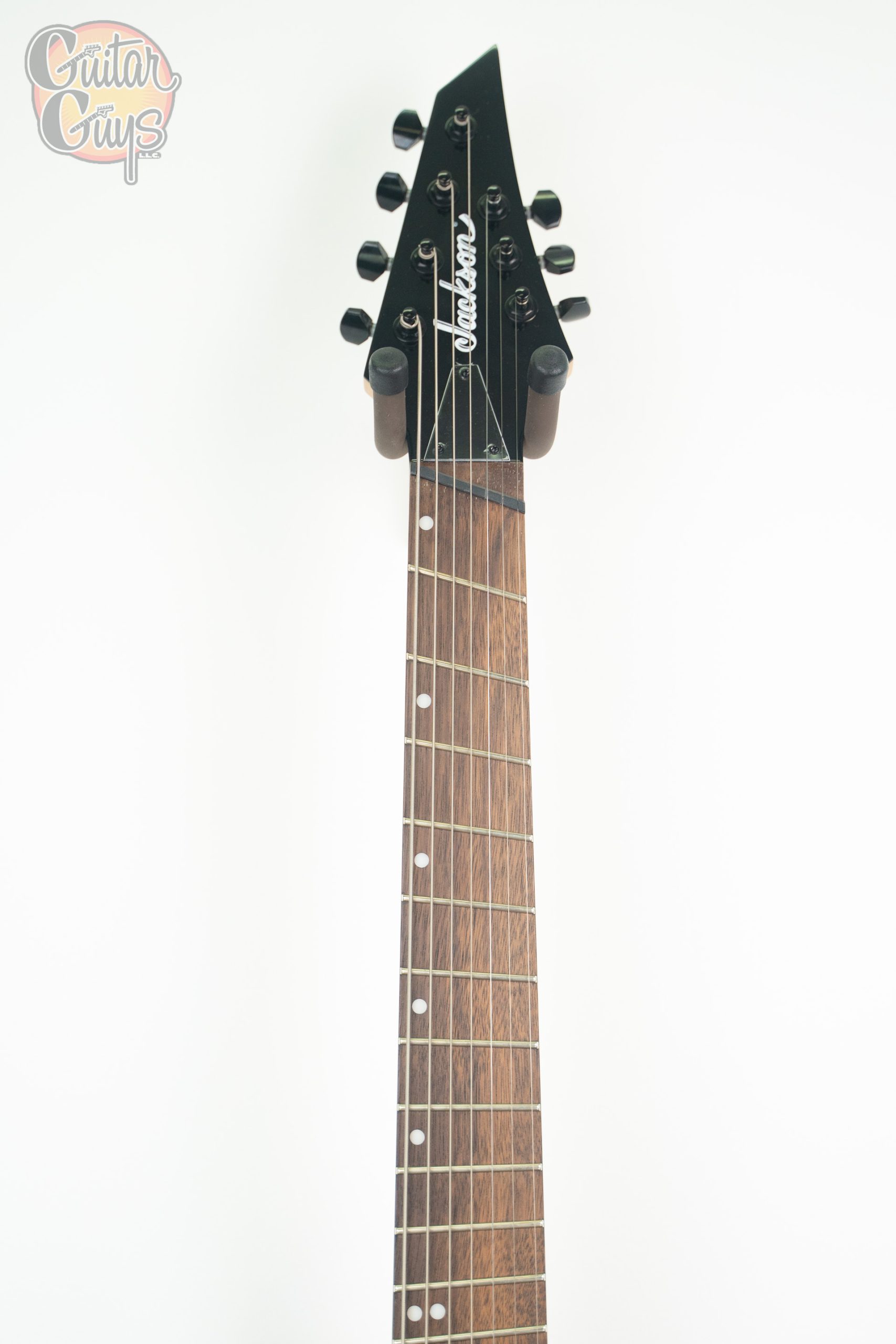 To help improve intonation, the guitar has been equipped with Jackson designed individual bridge saddles, staggered to accommodate for the two scale lengths.