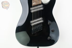Dual Jackson uncovered 7-string blade humbucking pickups power this metal beast and can be shaped by a three-way toggle switch and single volume and tone controls.