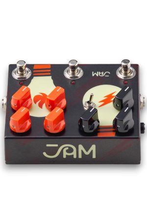 The Tubedreamer (Left Side) is JAM’s take on the legendary 808 Tubescreamer with a carefully tuned midrange frequency register delivering a warm and rich overdriven sound through any amp! A pivotal difference between the TD and other Tubescreamers, is that we chose to go with 3 diodes for asymmetrical clipping instead of symmetrical, enhancing the responsiveness of the pedal to fretting and picking nuances. Made with carbon comp resistors, the TD employs the JRC4558D chip to deliver its classic sound, just like in the original, sought-after 808’s.