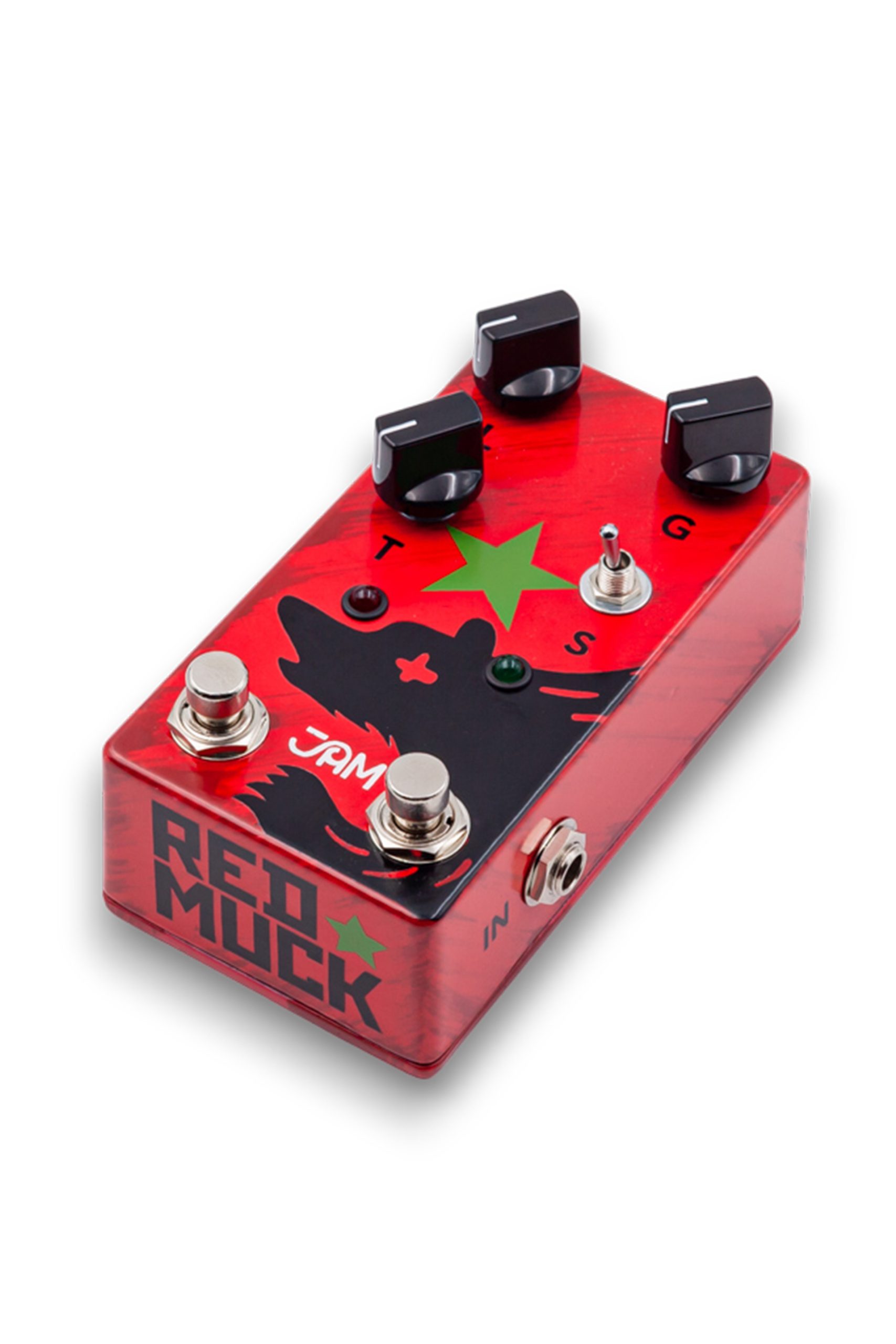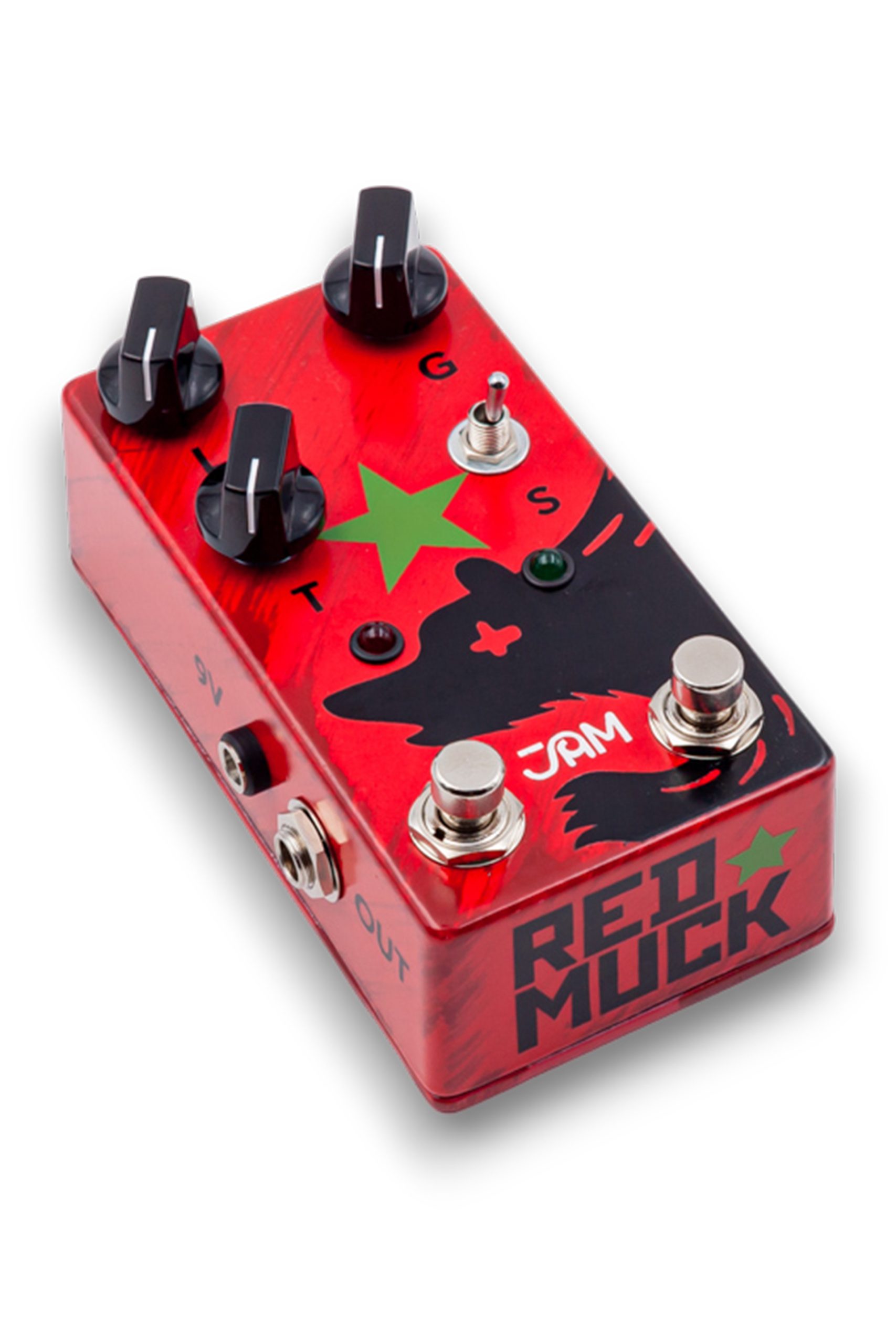 The Boost footswitch engages a dedicated section of the circuit, separately tuned to hit the front end of the Red Muck and generate even fatter walls of Fuzz-Distortion or with the Gain set lower, function as a High-Gain-Stage footswitch.