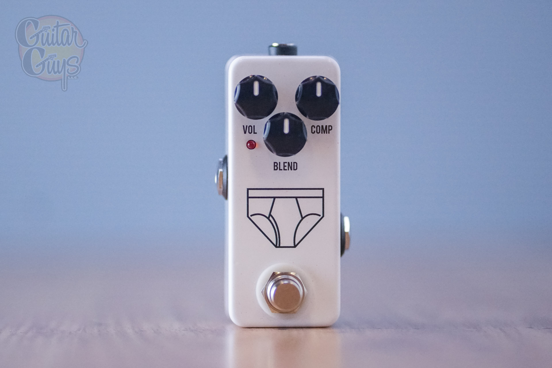 The Whitey Tighty is a FET compressor that has three simple controls: Volume, Compression, and Blend. The Volume control gives you the ability to set your volume at unity gain or slightly boosted to make up for any perceived loss from the compression. The Compression knob controls the amount of compression for everything from a subtle smoothing of your tone to a pleasing squash that’s perfect for country, blues, pop, and rock. Use the Blend knob to dial in the right amount of clean tone along with your compressed signal. This allows you to retain some of the natural feel of your clean tone while giving you the studio-quality compression that brings your sound to the next level.