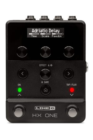 HX One is a powerful stereo effect pedal with intuitive controls that fits onto any pedalboard. Select one of 250+ effects taken from the acclaimed HX family processors and easily adjust the parameters displayed on the OLED screen using the three corresponding knobs. You can also automate parameter changes via the unique Flux controller and trigger them with the Tap/Flux footswitch. Connect an optional expression pedal or two external footswitches for additional control. HX One also provides adjustable input impedance; a choice of True Bypass or buffered DSP Bypass; MIDI In and Out/Thru connectors; 128 Presets; and a USB-C port for firmware updates and use with the HX One Preset Librarian application. HX One may be powered using the included 9V power supply or most third-party power supplies, making it easy to add to your pedalboard.