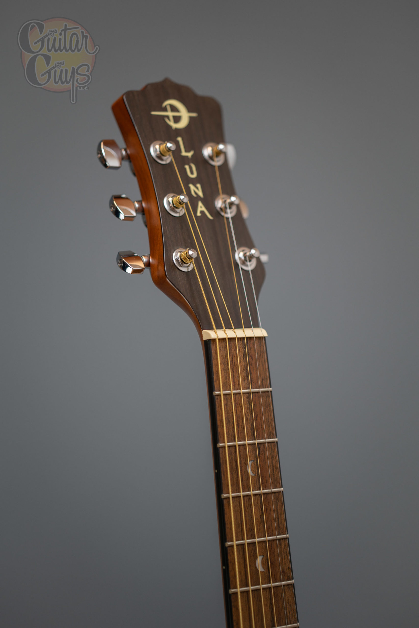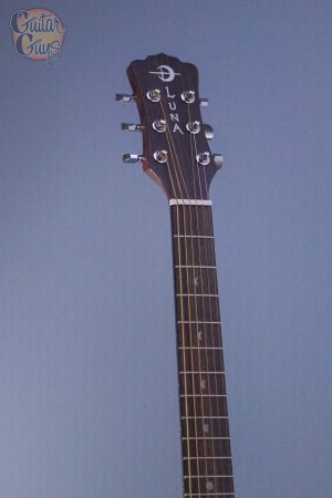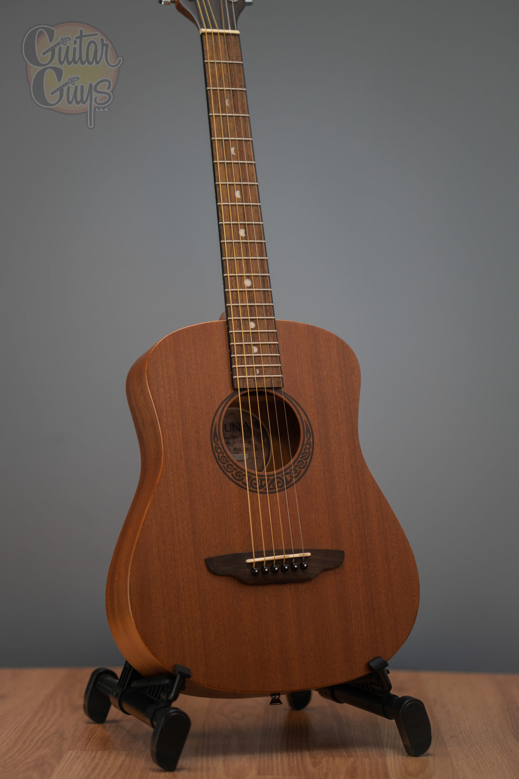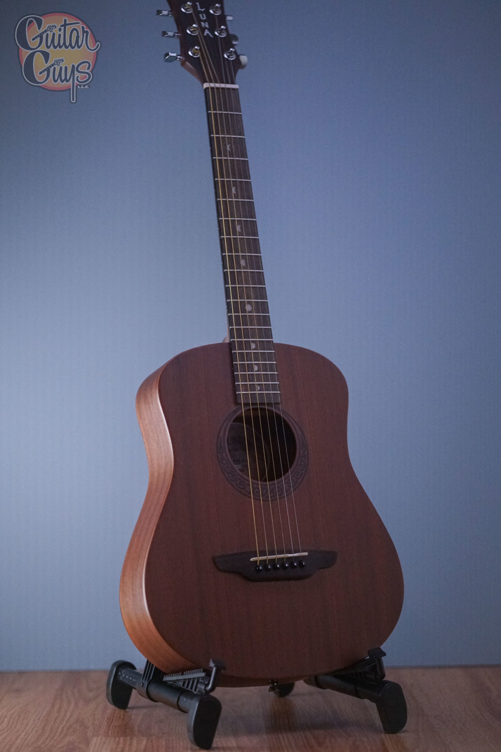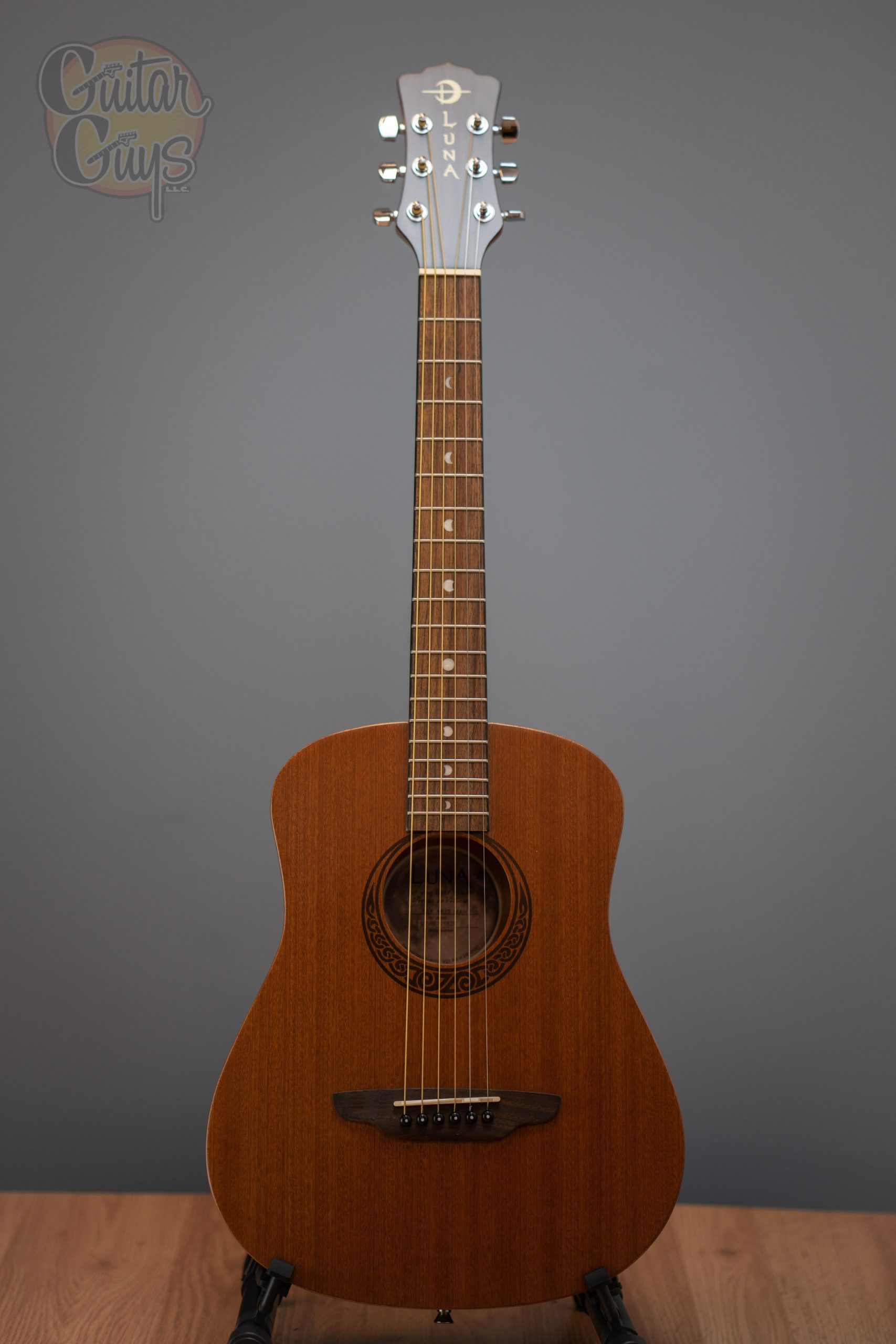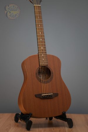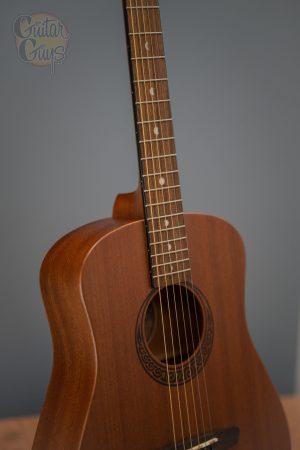 Our Safari Muse guitar is a 3/4 dreadnought travel acoustic featuring an eastern mahogany top, back, and sides, as well as a Celtic laser etching around the soundhole. While it is a compact guitar, Luna Safari Guitars deliver full size tone and tonal voice that belie its small size. Beautifully handcrafted from mahogany & walnut, the Safari boasts quality construction to match its sound and stunning design. Whether looking for a guitar for impromptu gigs, younger players as a student guitar or songwriting on the go, the Luna Safari Series are perfect for a variety of players and needs. Branded travel bag included.