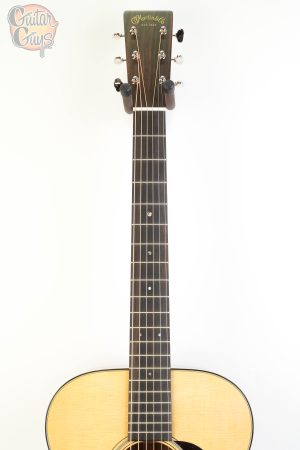 The Martin 00-18 is a trusted classic, beloved for its balanced and timeless tone. Its smaller, comfortable Grand Concert body size delivers a focused voice, with clear trebles and warm bass, making it perfect for intricate fingerstyle playing and dynamic, nuanced strumming. Handcrafted with a solid spruce top and solid mahogany back and sides, the 00-18 offers a bright treble response, punchy midrange, and the dependable projection players have relied on for generations. Its satin neck with a Golden Era (GE) Modified Low Oval profile, high-performance taper, and 24.9″ scale length provides unmatched comfort, while ebony details, including the bridge, bridge pins, and fingerboard with abalone dot inlays, enhance its iconic design. Complete with aging toner on its top, black binding, and nickel open gear tuners, the 00-18 is a guitar you can trust to unleash the artist within.