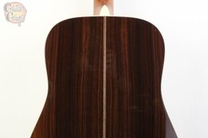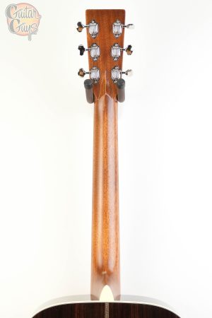 Billy Strings brings a modern twist to a classic pre-war design, incorporating features tailored to Billy’s electrifying playing style. This signature Dreadnought showcases a unique 25” scale length, reducing string tension for fast, intricate playing and expressive bends – perfectly suited for Billy’s rapid-fire licks. With a slightly slimmer nut width and modified low oval satin neck, it offers enhanced comfort and speed, ideal for players who crave agility up and down the neck. The solid East Indian rosewood back and sides and spruce top deliver a full, resonant tone with rich bass, while the bold herringbone trim, antique toner, and antique white binding add vintage flair. Nickel enclosed gear tuners, exclusive to Martin, and an ebony fingerboard with abalone diamond and square inlay round out the guitar’s looks and performance. It’s an ideal balance of traditional craftsmanship and modern playability, much like Billy’s genre-defying style. Each guitar features a custom paper label with his pre-printed signature and graphic.