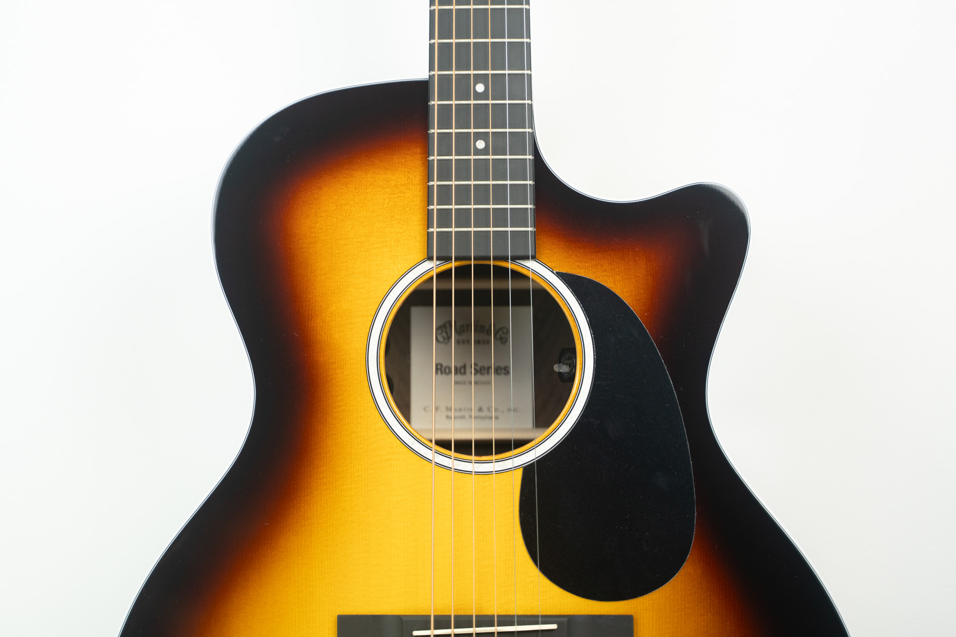 With a gorgeous glossed Sitka spruce top and ziricote back and sides, this solid wood Grand Performance cutaway model is a great sounding guitar at an affordable price. New to this model are stunning mother-of-pearl pattern fingerboard and rosette inlays, a multi-stripe rosette border, and white binding. It has an FSC Certified Richlite fingerboard and bridge, gloss body, and a hand-rubbed neck finish. Also new to this model is a Fishman MX-T electronics package with a built-in soundhole tuner that auto mutes the audio output so you can tune up any time without using a pedal. This guitar comes with a burst option and Premium Soft Shell Case so it is Road-ready to join you on all of your adventures!