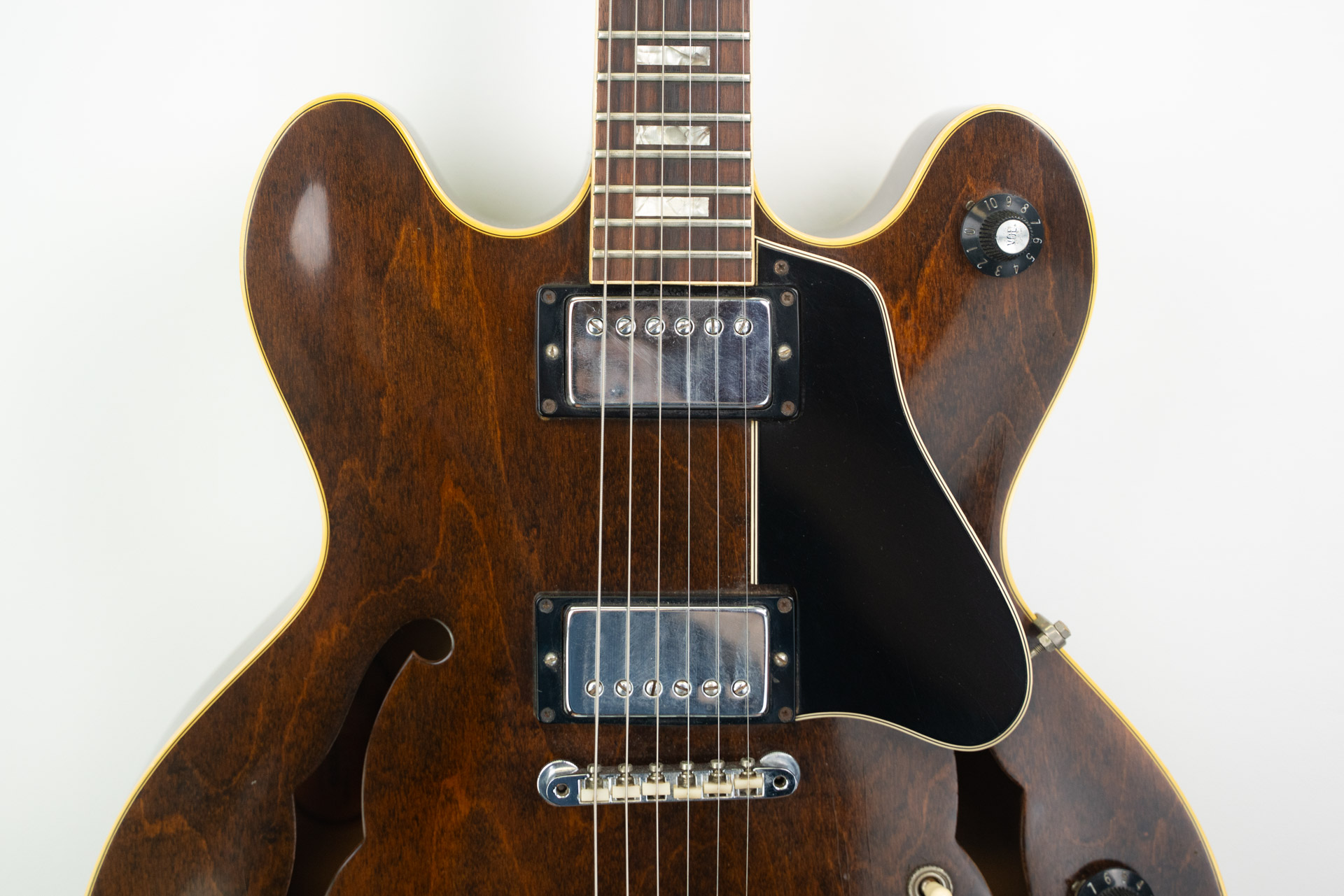 No major dings or scratches. The guitar has had a mild headstock repair. The break doesn’t go all the way through, but the repair is still visable. Please see photos for details. Plays great and all of the electronic work as they should.