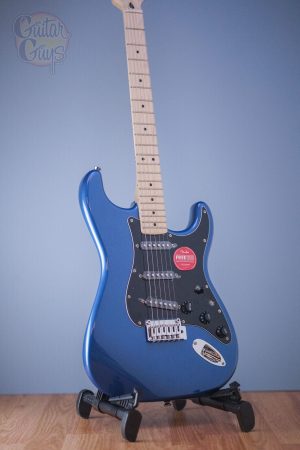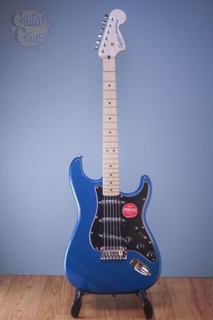 A superb gateway into the time-honored Fender® family, the Squier® Affinity Series™ Stratocaster® delivers legendary design and quintessential tone for today’s aspiring guitar hero. This Strat® features several player-friendly refinements such as a thin and lightweight body, a slim and comfortable “C”-shaped neck profile, a 2-point tremolo bridge for superior tremolo action and sealed die-cast tuning machines with split shafts for smooth, accurate tuning and easy restringing. Loaded with a trio of Squier single-coil Strat pickups with 5-way switching for genre-defying sonic variety, this model is ready to accompany any player at any stage.