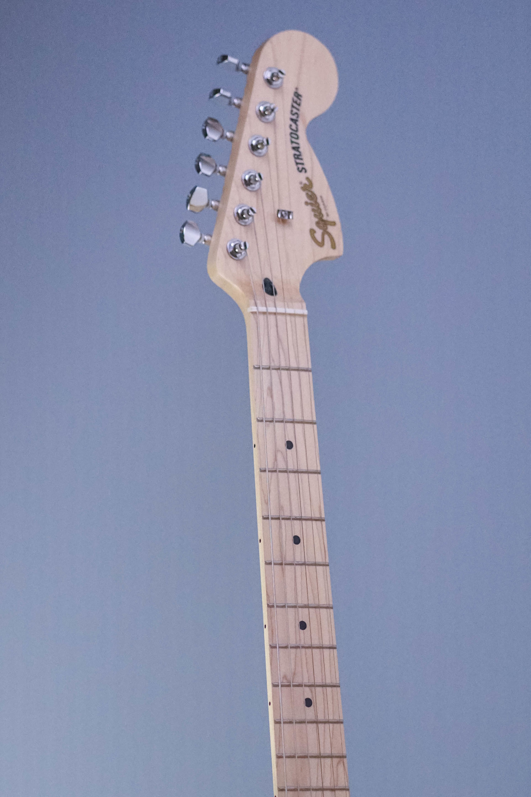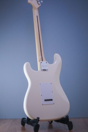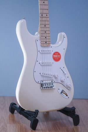 A superb gateway into the time-honored Fender® family, the Squier® Affinity Series™ Stratocaster® delivers legendary design and quintessential tone for today’s aspiring guitar hero. This Strat® features several player-friendly refinements such as a thin and lightweight body, a slim and comfortable “C”-shaped neck profile, a 2-point tremolo bridge for superior tremolo action and sealed die-cast tuning machines with split shafts for smooth, accurate tuning and easy restringing. Loaded with a trio of Squier single-coil Strat pickups with 5-way switching for genre-defying sonic variety, this model is ready to accompany any player at any stage.