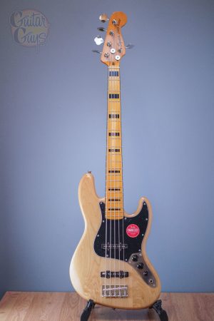The Classic Vibe ‘70s Jazz Bass® V is a nod to the 1970s evolution of the J Bass®, combining the luxurious playability that made it famous with the versatility and massive tone of its dual Fender-Designed alnico single-coil pickups. Player-friendly features include a slim, comfortable “C”-shaped neck profile with an easy-playing 9.5”-radius fingerboard and narrow-tall frets, as well as a vintage-style bridge with slotted barrel saddles for solid string stability. This throwback Squier model also features 1970s-inspired headstock markings, rich-looking nickel-plated hardware and a slick vintage-tint gloss neck finish for an old-school vibe.