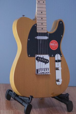 A superb gateway into the time-honored Fender® family, the Squier® Affinity Series™ Telecaster® delivers legendary design and quintessential tone for today’s aspiring guitar hero. This Tele® features several player-friendly refinements such as a slim and comfortable “C”-shaped neck profile, a 6-saddle bridge for fine intonation adjustment and sealed die-cast tuning machines for smooth, accurate tuning. Loaded with dual Squier single-coil Tele pickups with 3-way switching for genre-defying sonic variety, this model is ready to accompany any player at any stage.