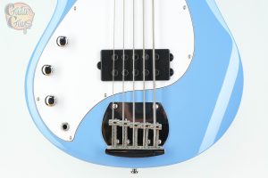 With its iconic double-cutaway body in eye-catching Chopper Blue, this StingRay 5 RAY5 left-handed bass guitar brings legendary design and sound to left-handed bassists. The jabon body and 34″ scale maple neck provide resonant, organic tone you can feel, aided by the chambered body design that allows the strings to vibrate freely. When you need that iconic StingRay growl, the RAY5 lefty bass delivers it in a format tailor-made for southpaws.