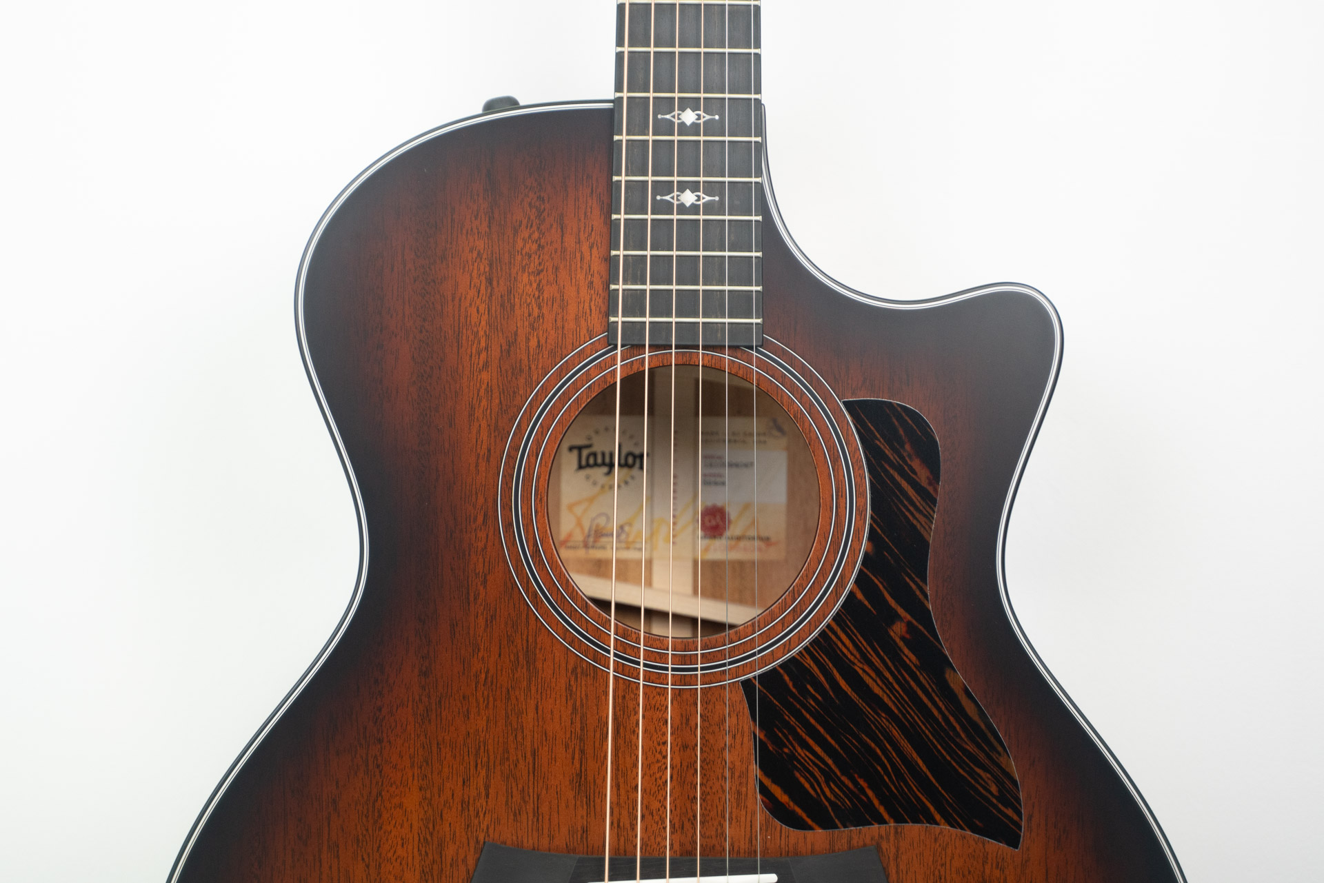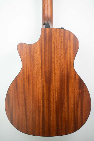 This darkly alluring cutaway Grand Auditorium boasts unique visual appeal thanks to its mahogany top, and there’s sonic magic under the hood as well. Our groundbreaking V-Class bracing enhances the volume, sustain and projection, bringing out even more of the natural midrange focus of its Tasmanian blackwood back and sides. While the natural compression of the hardwood mahogany top tends to even out the response across the tonal spectrum, the V-Class design boosts the dynamic range, especially in the upper register, and the in-tuneness of the notes everywhere along the fretboard is wonderfully consistent. All of these nuances add up to a versatile choice for gigging, practicing or recording across multiple playing styles. The dusky hues of the mahogany top project a rootsy vibe, accented by a shaded edgeburst, black binding, a matching pickguard, and muted satin-finish sheen. The guitar ships with ES2 electronics in a deluxe hardshell case.