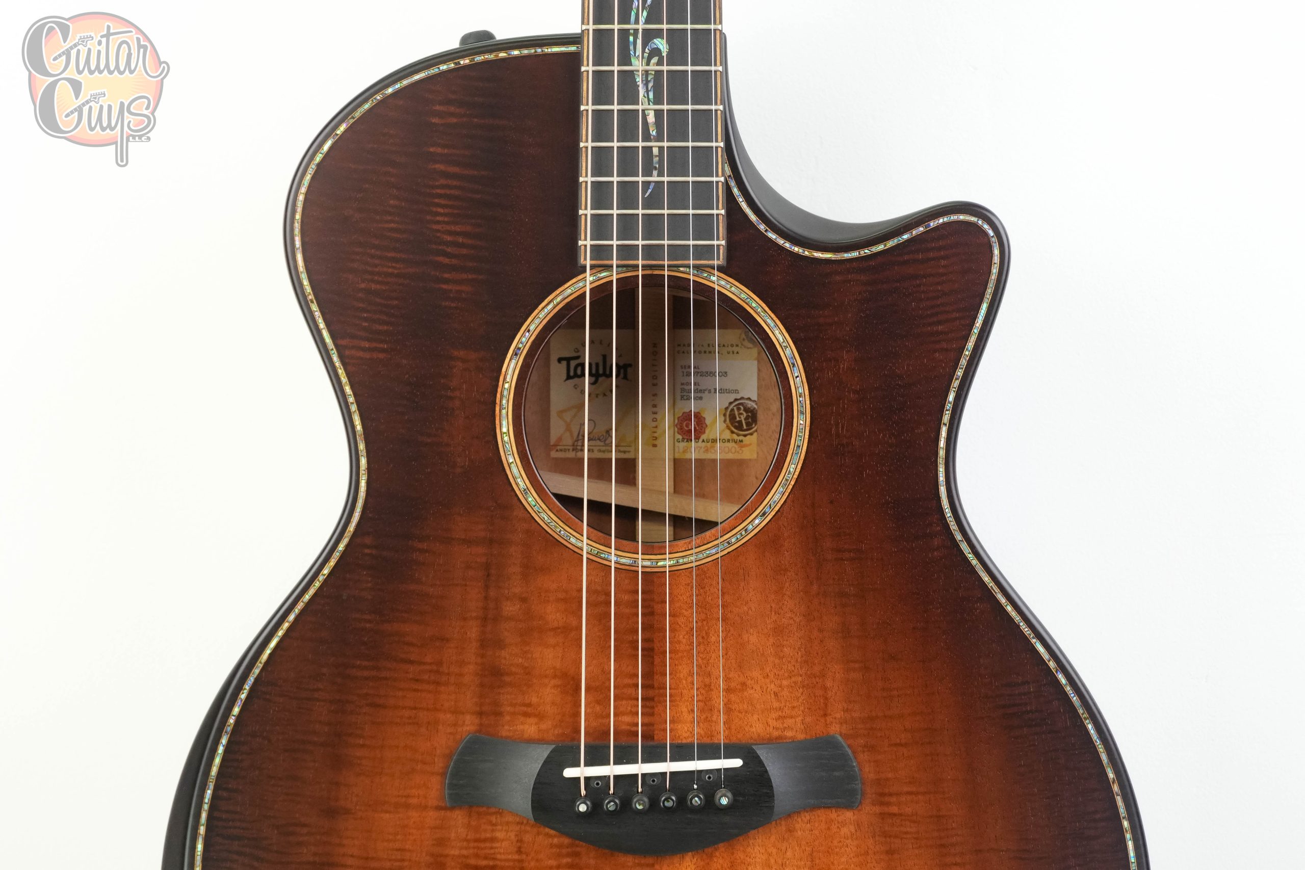 The Builder’s Edition represents the pinnacle of Taylor’s design philosophy. Master Guitar Designer Andy Powers has meticulously refined every detail of this guitar to create an unparalleled playing experience. Features like a beveled armrest, beveled cutaway with neck heel contouring, and a “Curve Wing” bridge enhance comfort and playability. The “Silent” satin finish with Kona burst adds a touch of elegance, while paua inlays and premium Gotoh tuners complete the luxurious aesthetic. This Taylor K24ce Builder’s Edition is a guitar that feels as good as it looks.