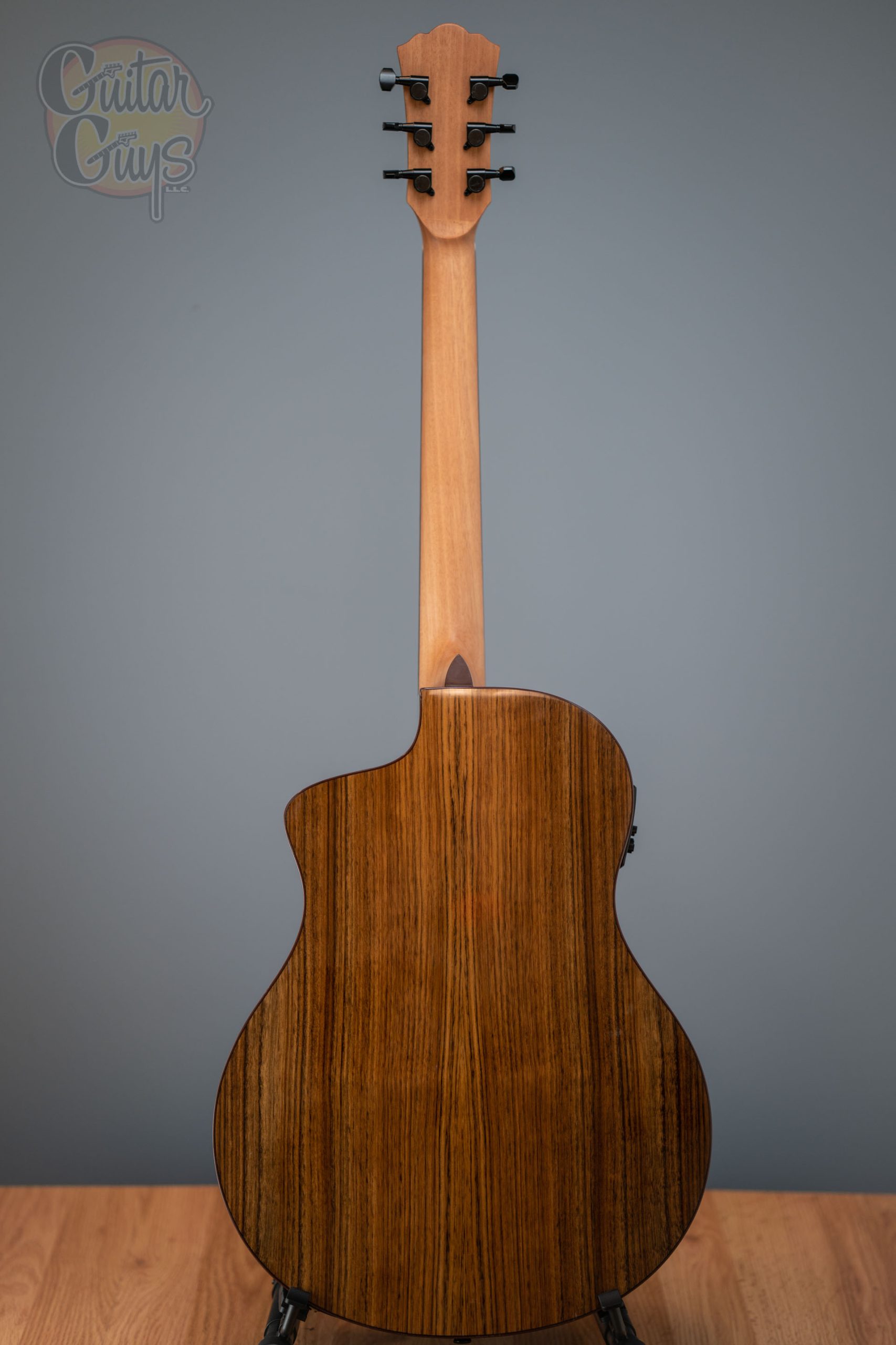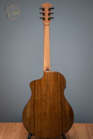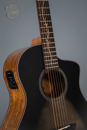 At first glance, the Bella Tono S9V is an obvious pairing to the S9 boasting the same eye-catching high gloss charcoal-burst Spruce top and figured Walnut back & sides. The S9V differs in that it features a cutaway body design, the Barcus Berry LX4 pickup system for amplified possibilities and a breath-taking exotic-wood vine inlaid Ebony fingerboard.